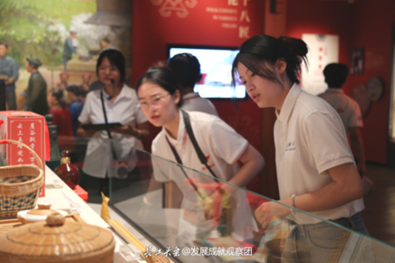 随后,实践队员步入了精致茶厂,五峰作为茶乡的独特韵味扑面而来,实践队员不仅品鉴了茶文化的醇厚,更体验了茶艺的魅力。在五峰非遗传承展示馆,实践队员深刻感受到了五峰人民对传统文化的坚守与热爱,非物质文化遗产的保护与传承工作令人印象深刻。