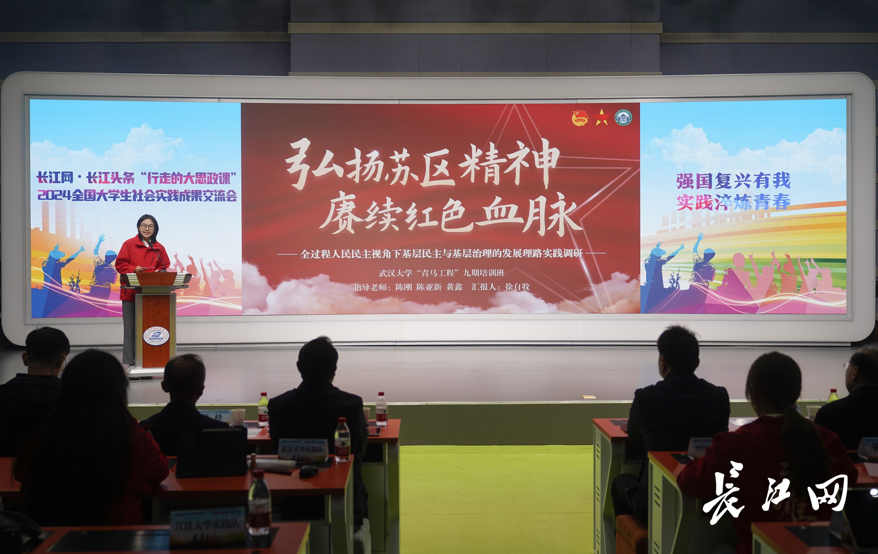 “我印象最为深刻的其实是在职业中专的一次调研。信阳市罗山县职业中专是罗山县的四个民主基层实践点之一,在那里我们可以看到学校制度文件都获得了公开。实践队员在查阅他们的制度文件时,真切感受到了民主。”12月27日,长江网•长江头条“行走的大思政课”2024全国大学生社会实践成果交流会在华中科技大学举行,武汉大学“青马工程”九期的实践队队员徐自牧接受长江网记者采访,并作了主题分享。