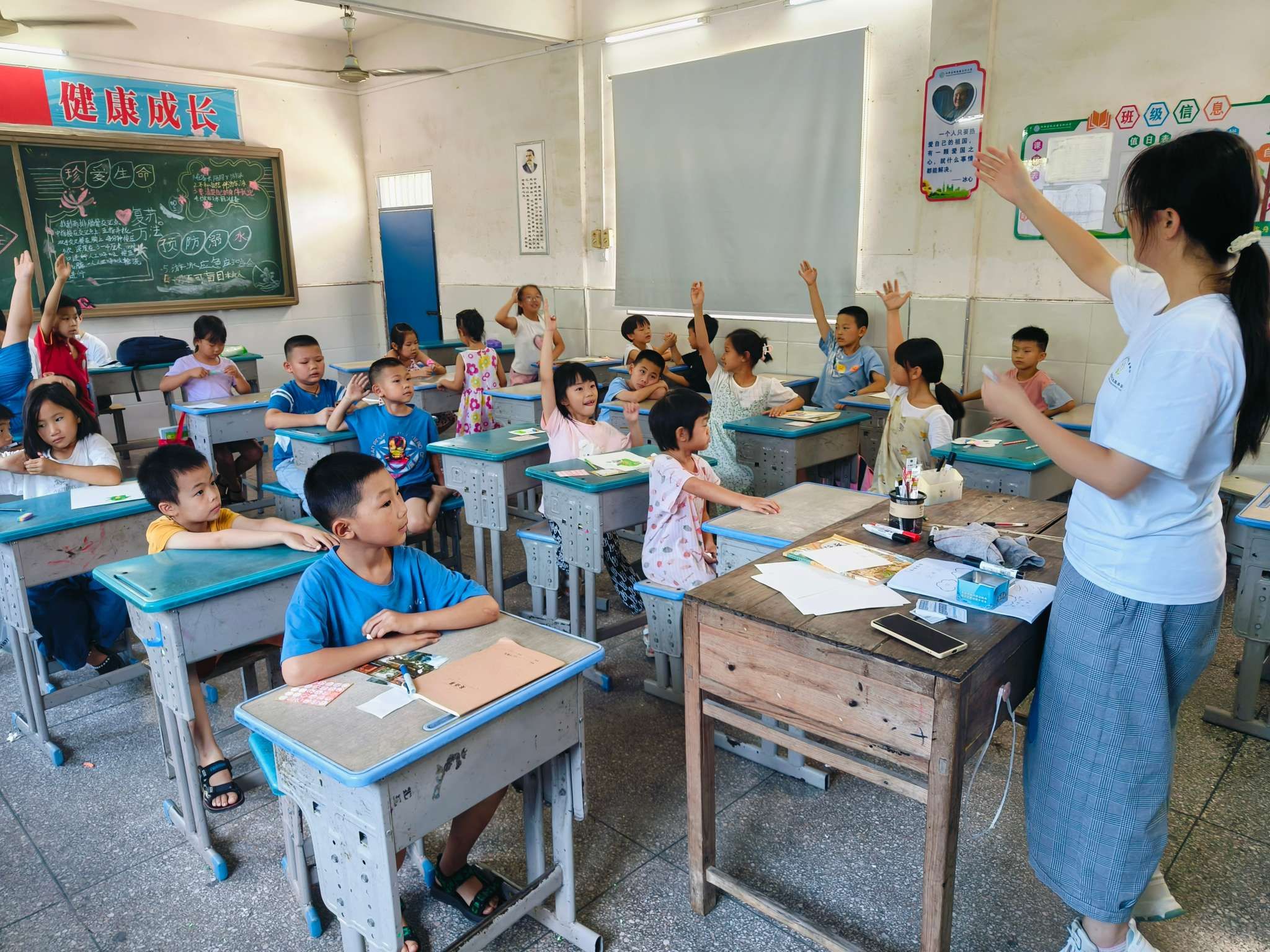 实践队队员给孩子们上课。图源校方