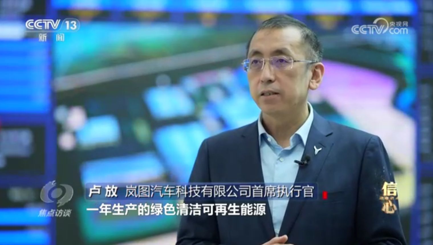 卢放:“光伏项目一年生产的绿色清洁可再生能源,占到这个工厂能源消耗的13%以上。未来清洁能源的消耗占比达到25%以上,目标就是用绿色能源生产绿色新能源汽车。”