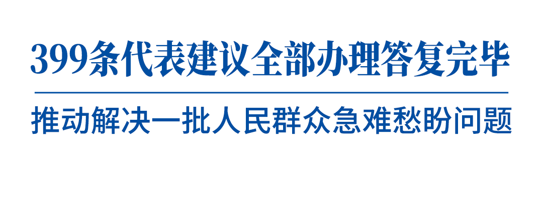 让每一件代表建议掷地有声,做到“民有所呼、我有所应”。一年来,全体人大代表围绕中心、服务大局,在深入调研的基础上提出建议399条。截至目前,经各方面共同努力,399条代表建议已全部办复,一批社会普遍关心的问题得以解决。