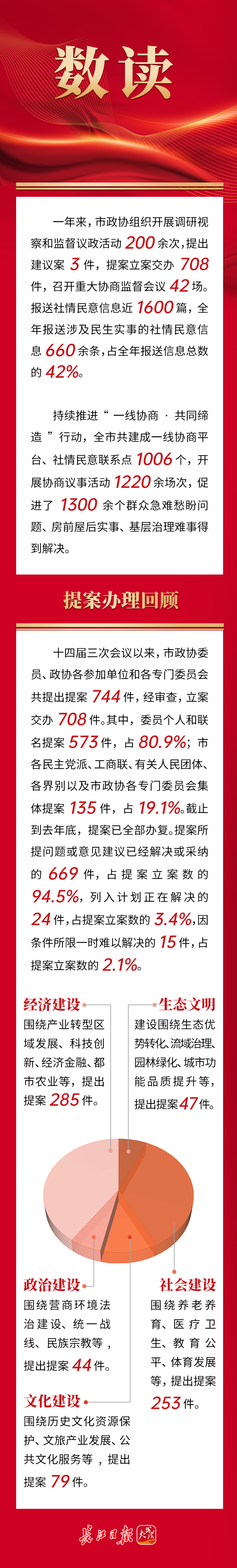 ●助推民生难事有力破解。运用提案办理履职为民,办理养老事业、教育公平、养育政策、心理健康、医疗卫生等民生类提案253件。充分利用社情民意信息反映各界群众利益诉求,拓展社情民意反映渠道。持续推进“一线协商·共同缔造”行动,推进协商议事平台规范化建设和提质拓面,打造一批协商议事平台示范点,切实融入服务基层社会治理。