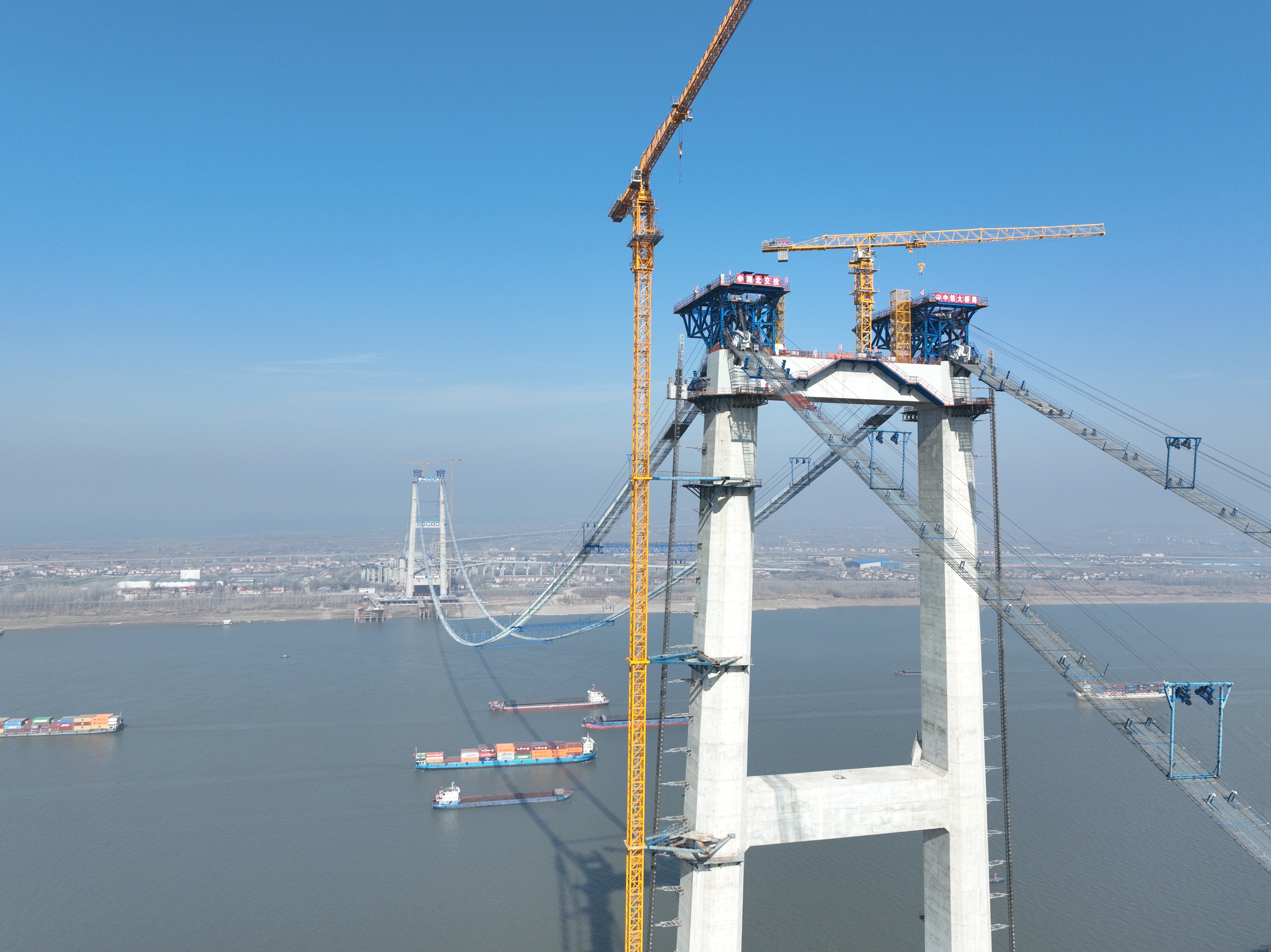 长江日报大武汉客户端1月13日讯 1月13日,由湖北交投集团投资建设、中铁大桥局集团负责施工的新港高速公路双柳长江大桥迎来重要进展:首根主缆索股成功架设,意味着大桥建设进入了主缆架设阶段。