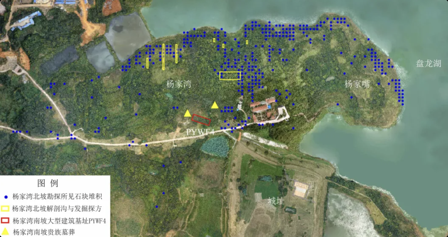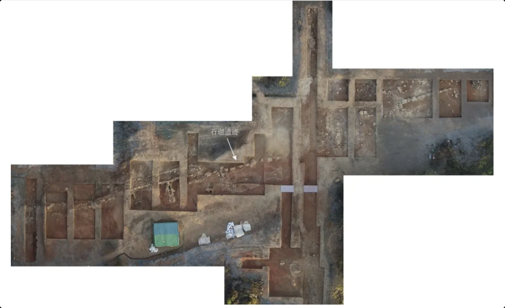 盘龙城杨家湾北坡发现的大规模石砌遗迹。