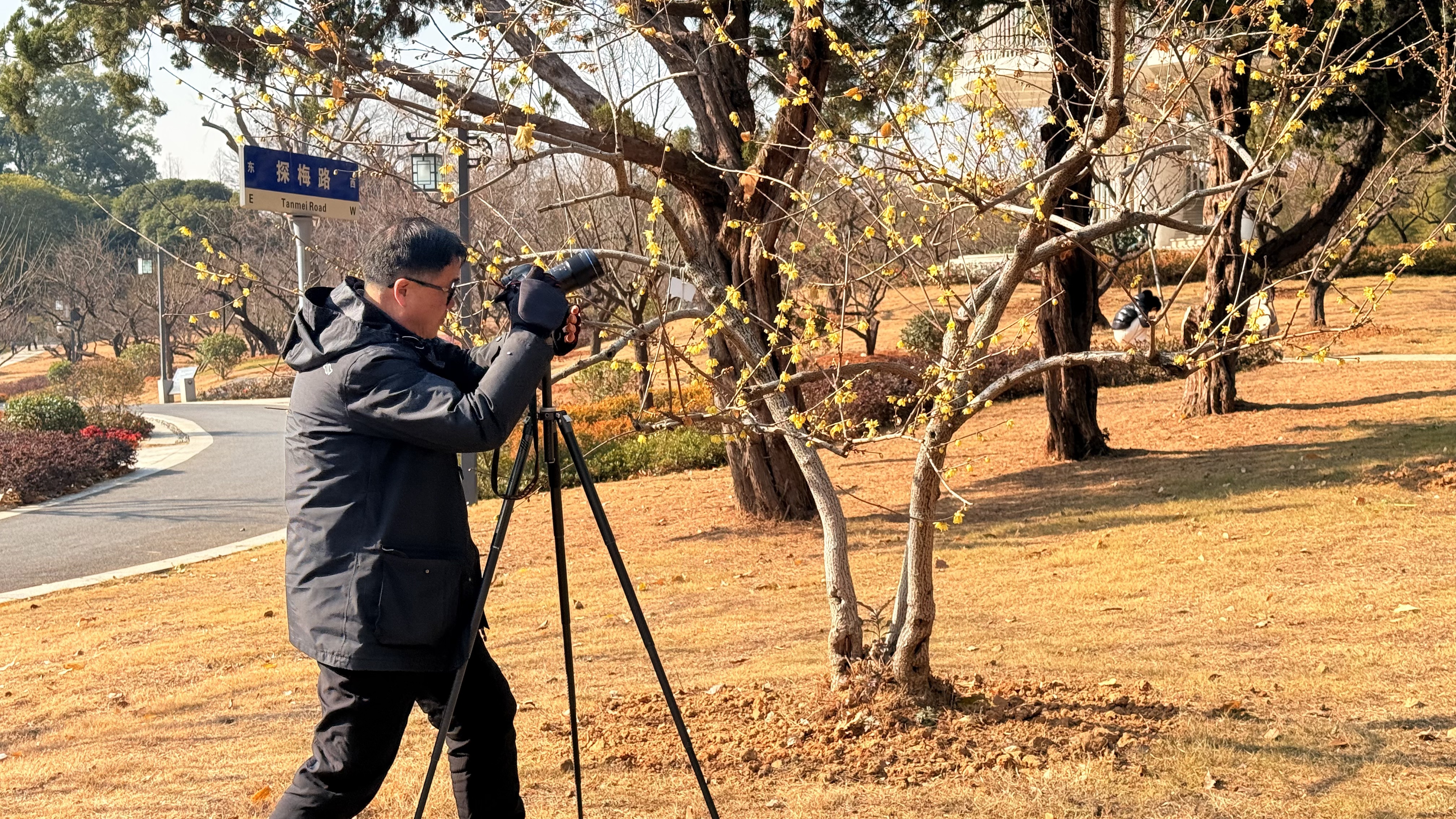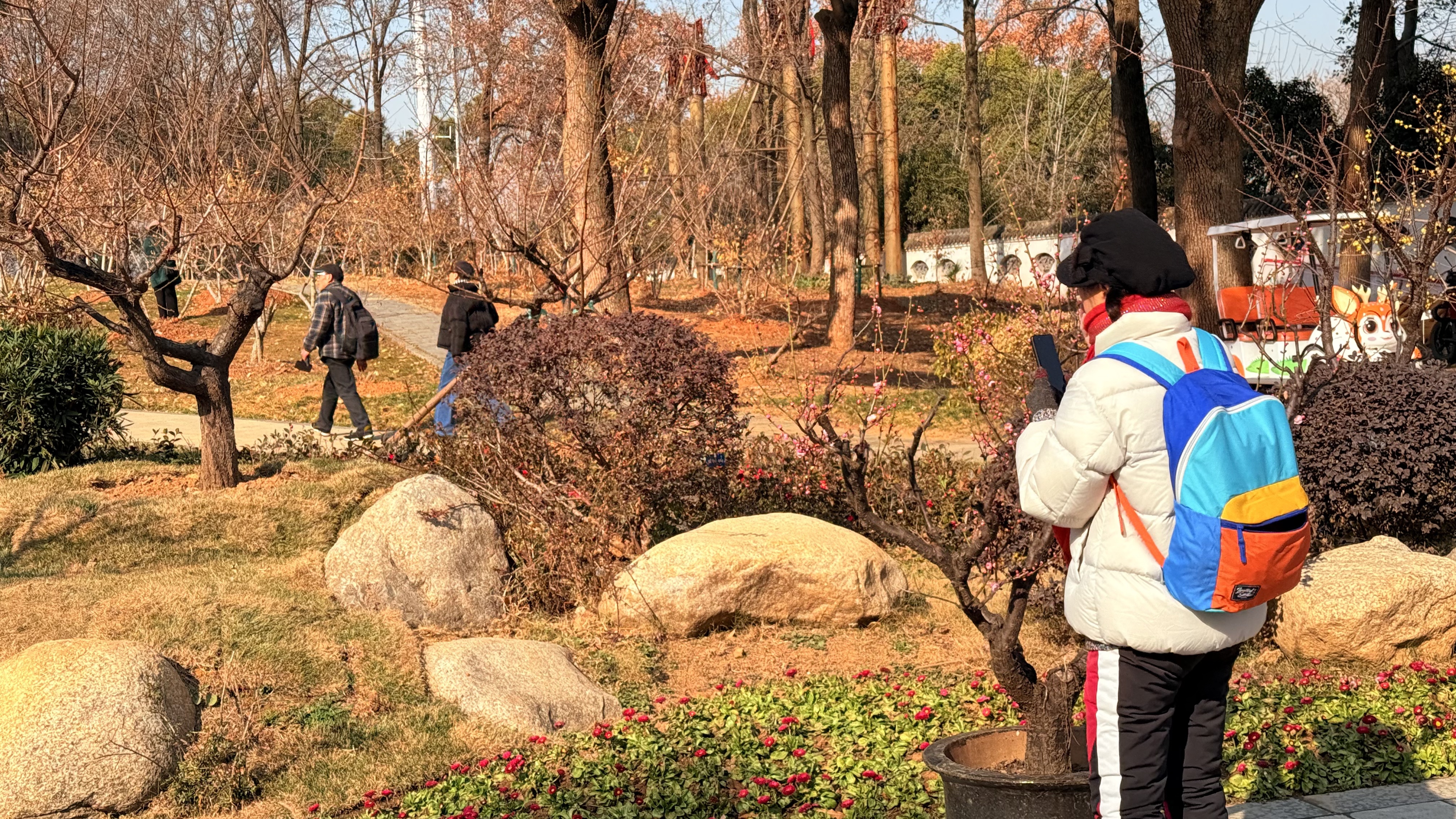 开园首日,蜡梅开放六成,梅花含苞待放。 赵丽摄