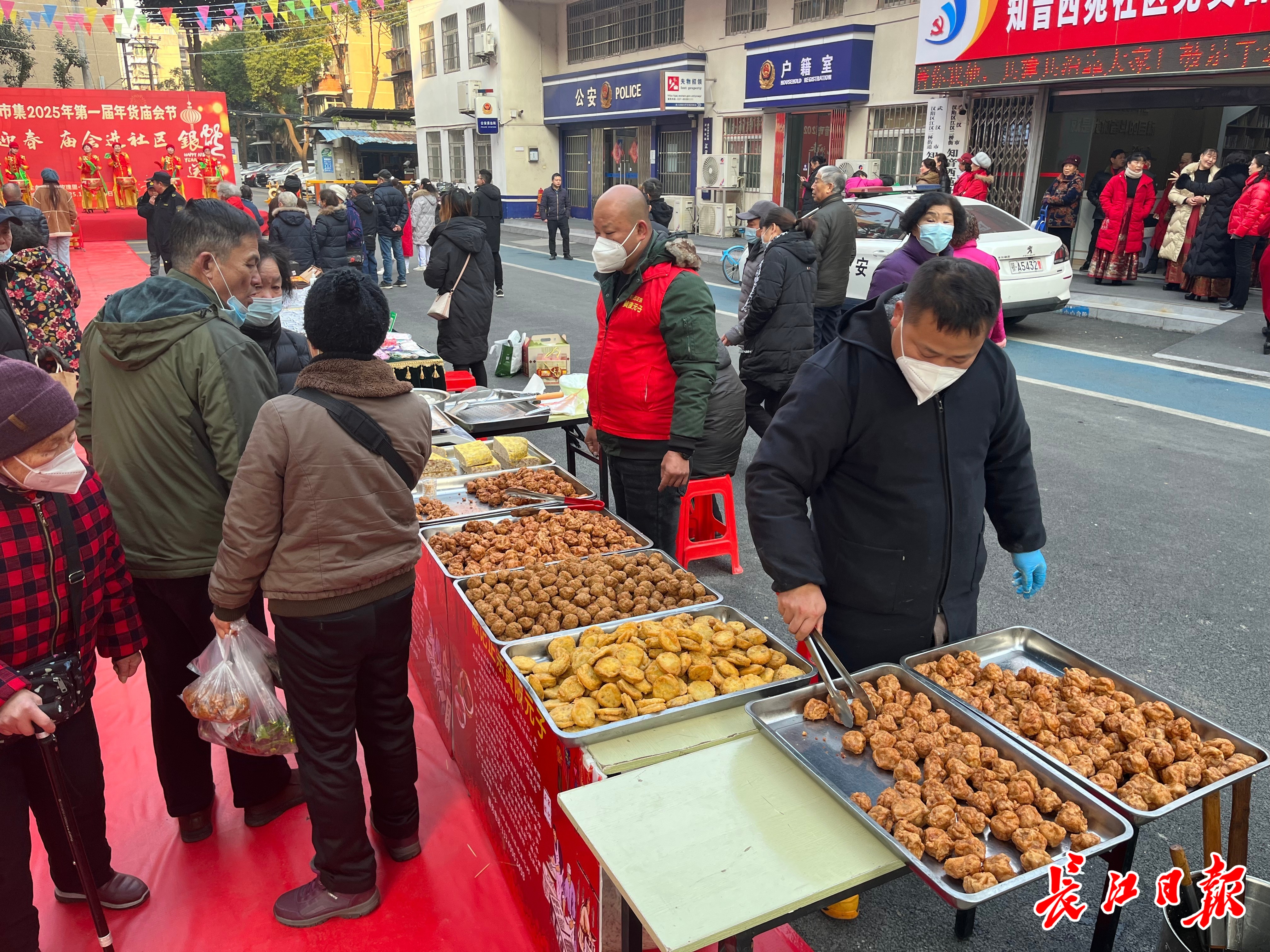 临近春节,年味愈发浓厚,武汉不少社区都在家门口办起“年货大集”。在永利社区组织的睦邻年货节现场,记者看到,不仅有传统的春联、福字、灯笼等春节饰品,以及丰富多样的特色美食,社区还准备了免费理发、擦鞋、中医养生、测血压等便民服务。