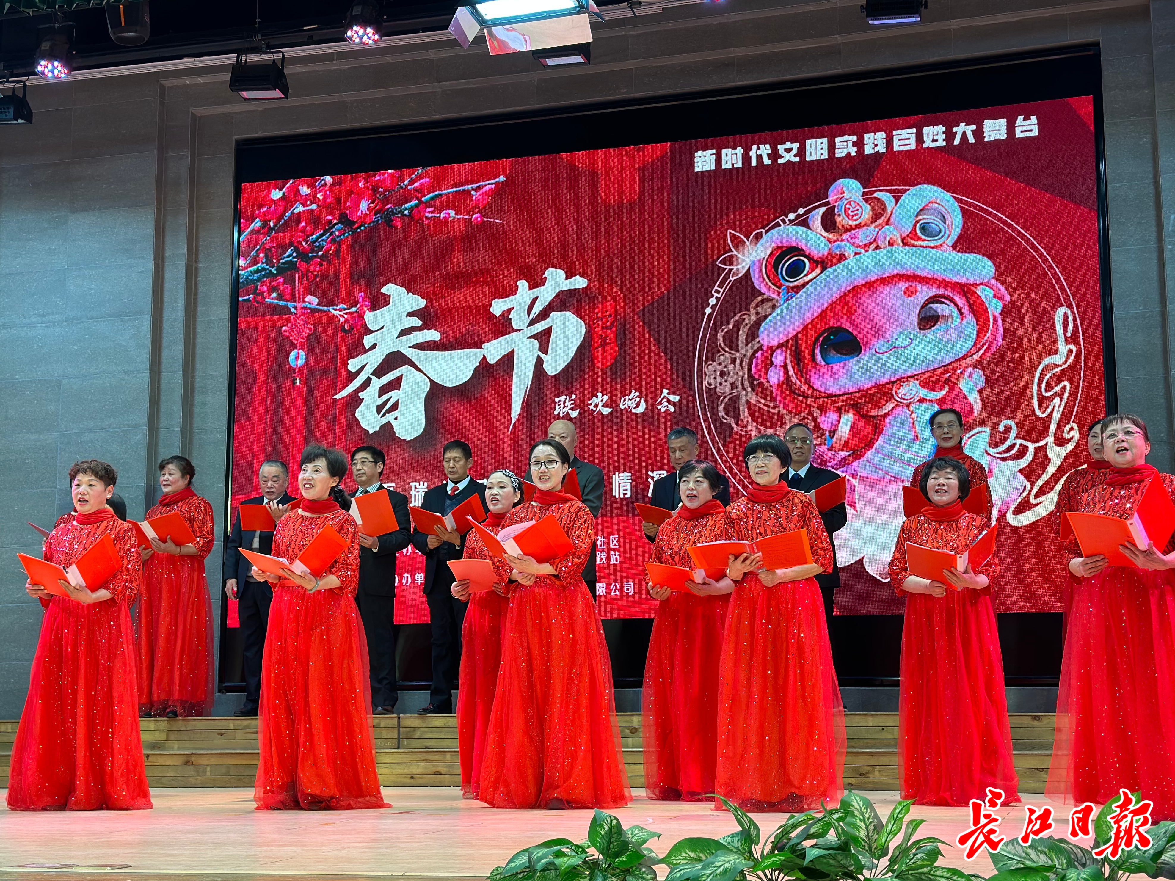 瑞景小学报告厅内,社区组织的迎新晚会也正在进行。“这些都是居民们自编自演的歌舞、小品,吸引了200多位居民的热情参与,今天还有600多名居民特地前来观看,大家都十分积极。”百瑞景社区相关负责人说道。