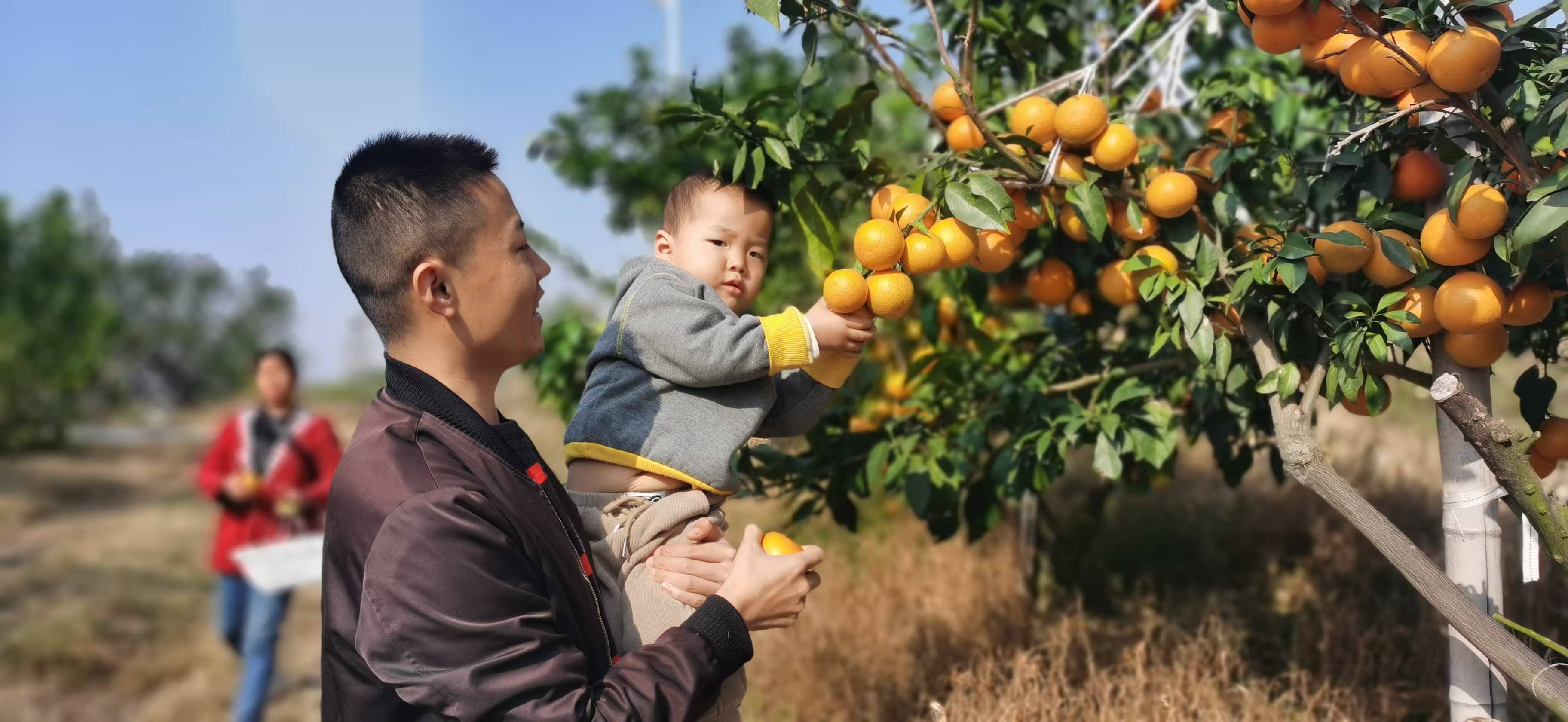 武汉市民王聪带着两岁的儿子来橘园采摘。通讯员武龚萱摄