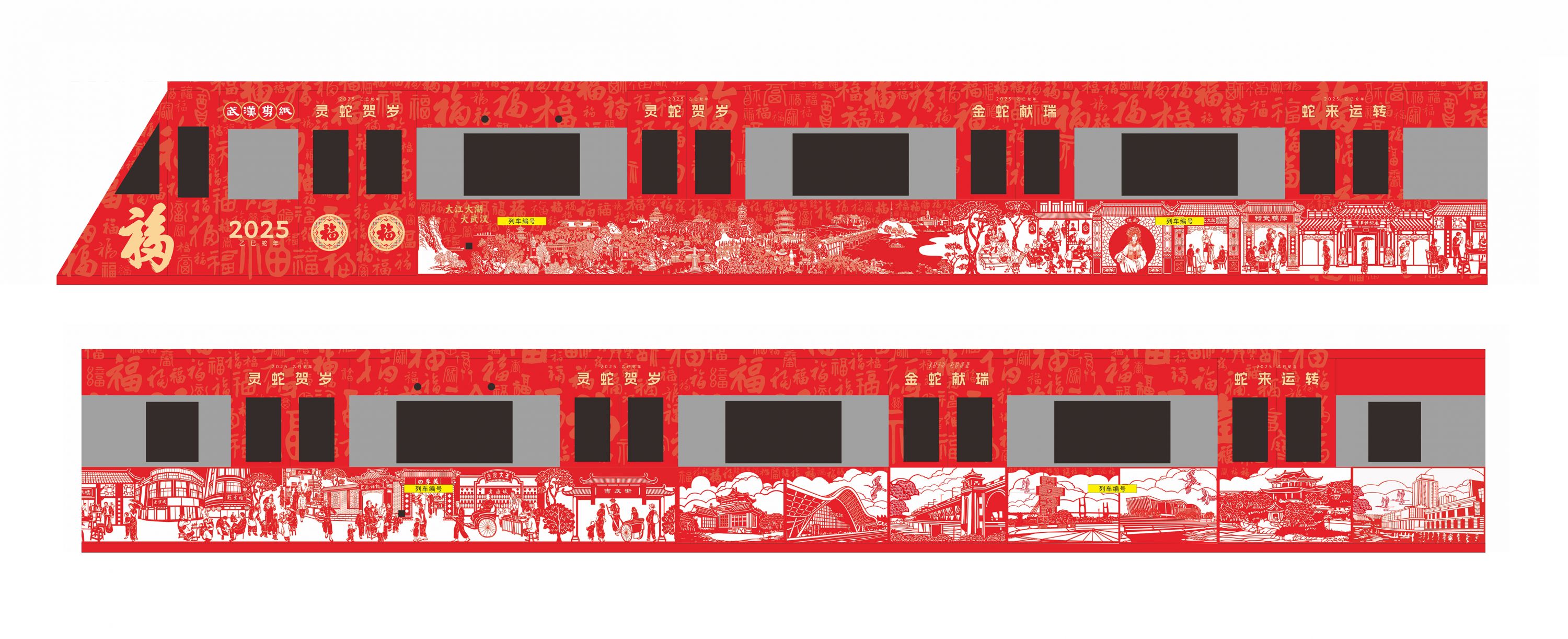 沈松柏工作室为即将开行的武汉地铁“百福列车”车身创作的剪纸长卷。