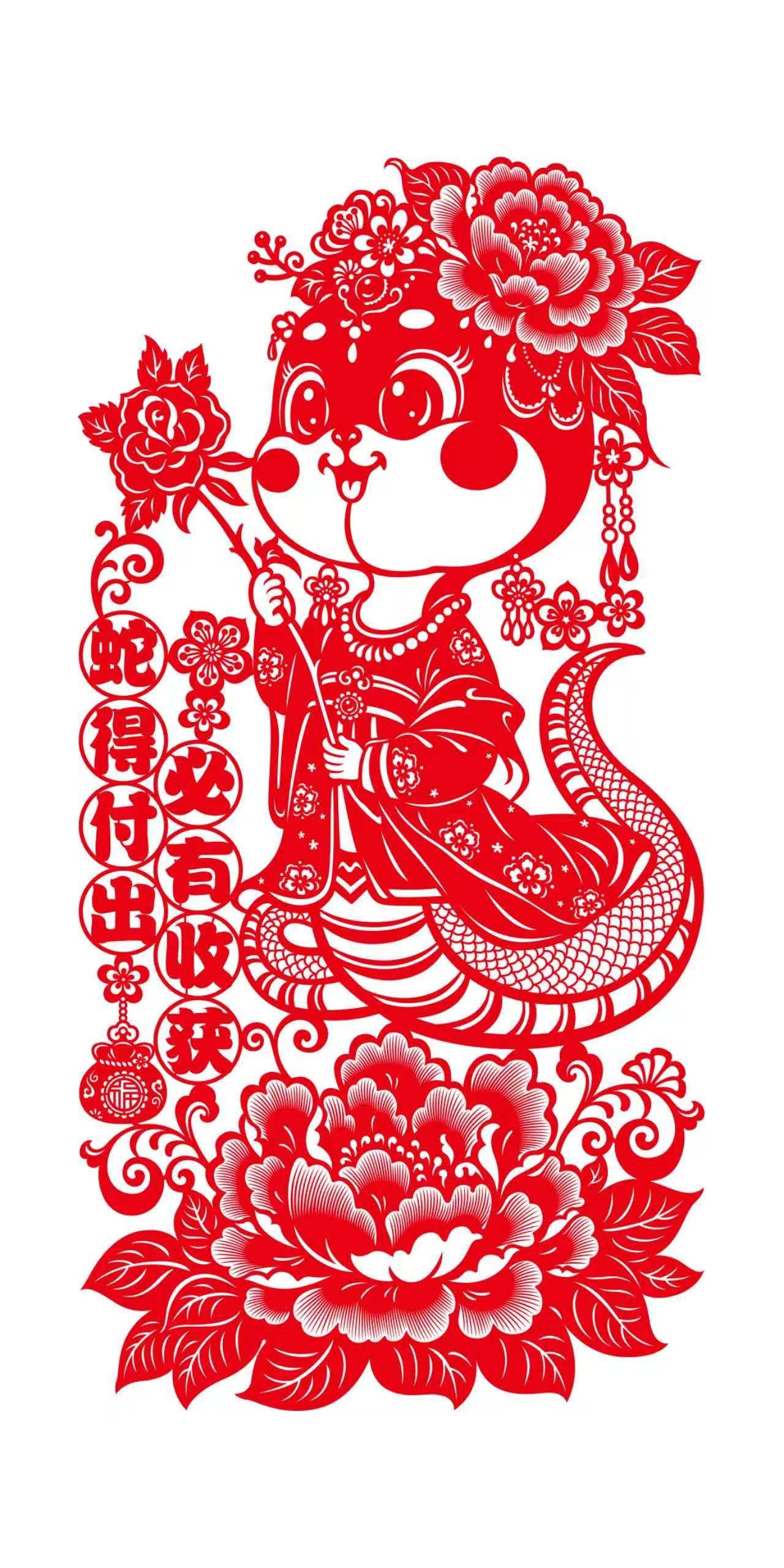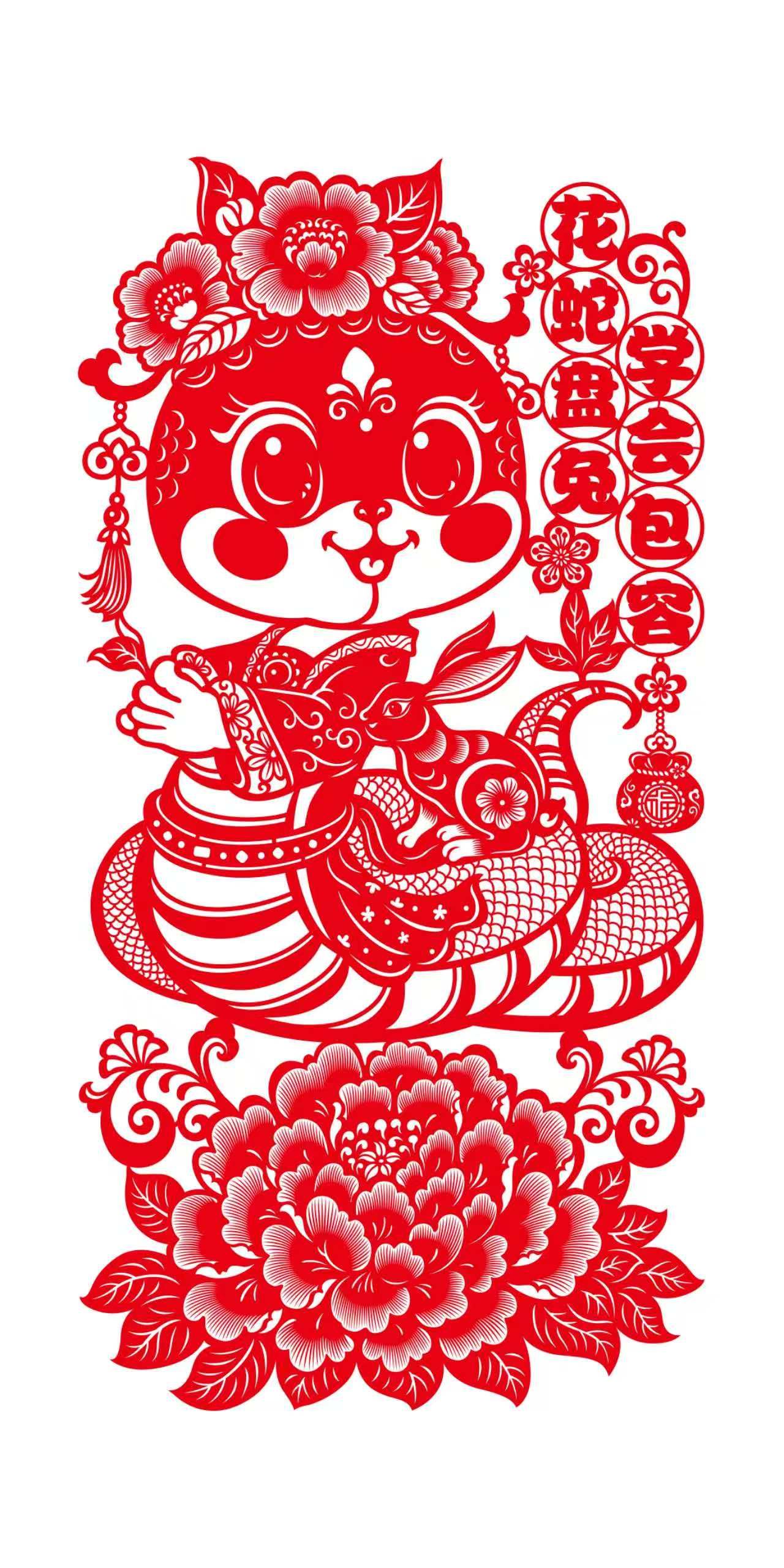 沈松柏首先把自己新创作的《蛇得付出 必有收获》《花蛇盘兔 学会包容》两幅作品和《十全十美》十幅作品展示给小朋友们看。记者看到,《蛇得付出 必有收获》《花蛇盘兔 学会包容》两幅作品,以喜庆的红色为主基调,蛇被塑造得如胖乎乎的儿童般,头戴花冠,一幅中手持花枝,另一幅中驮着一只兔子,煞是可爱。沈松柏向小朋友讲出其中寓意,第一幅用“蛇”“舍”两字谐音,讲一分耕耘一分收获,第二幅蛇兔和谐共处,讲学会包容,两幅作品共同表达对2025年新的一年的希望与祝福。