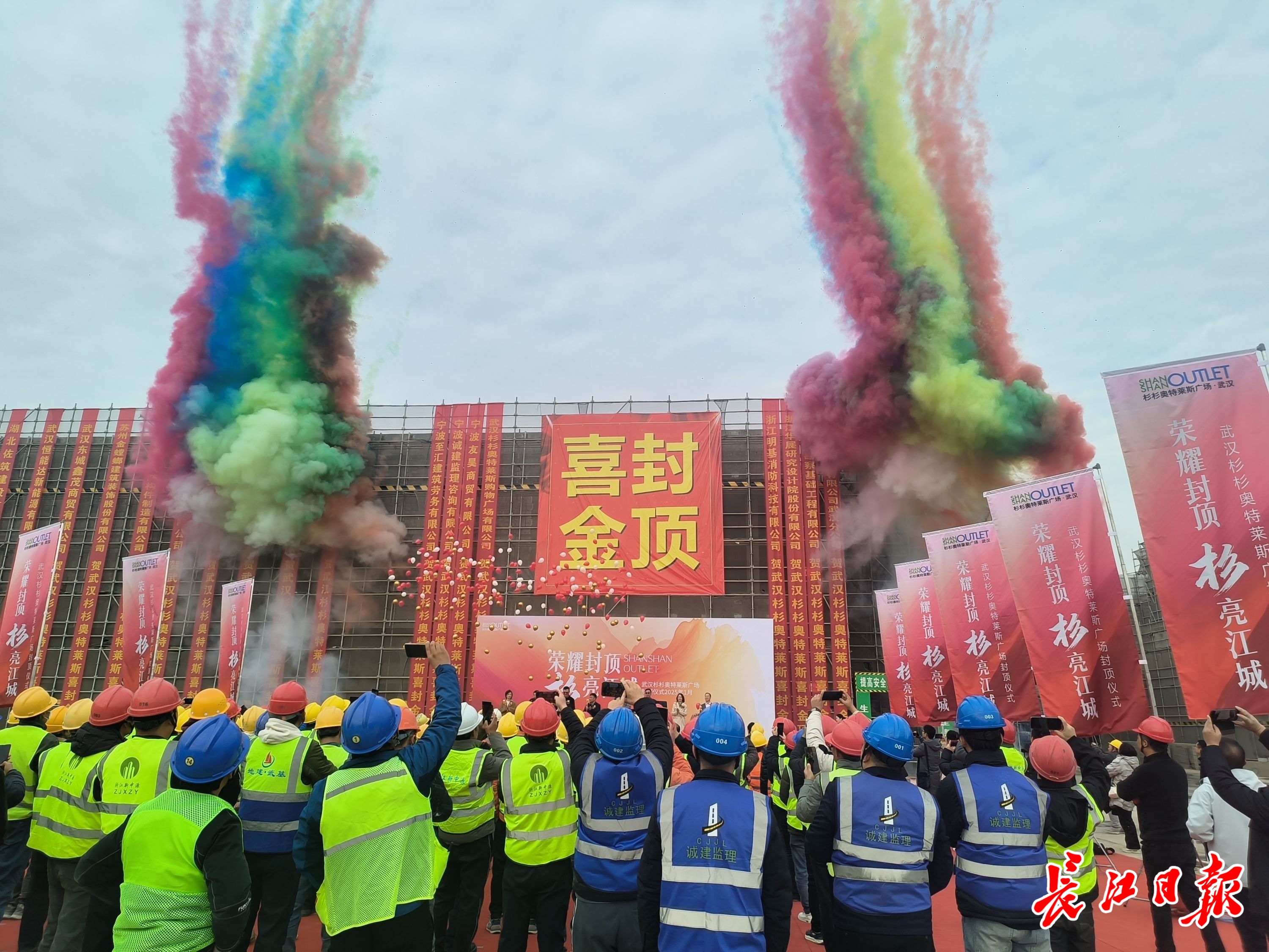 武汉杉杉奥特莱斯主体结构顺利封顶。记者徐丹 摄