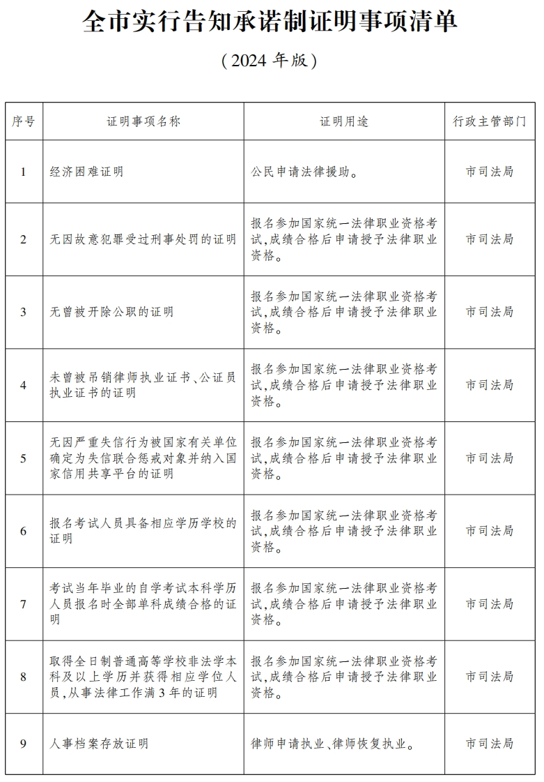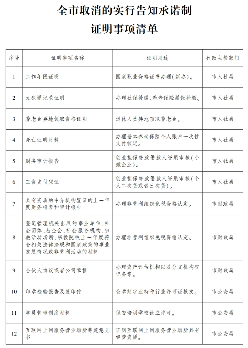 为持续深入推进“减证便民”,进一步优化营商环境,按照省人民政府关于全面推行证明事项告知承诺制工作部署以及深化数据赋能扩大“免证明”应用领域工作要求,经市人民政府同意,现予公布《全市取消的实行告知承诺制证明事项清单》和《全市实行告知承诺制证明事项清单(2024年版)》。
