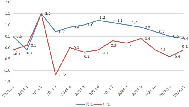 2023年12月—2024年12月武汉市CPI分月走势(单位:%)