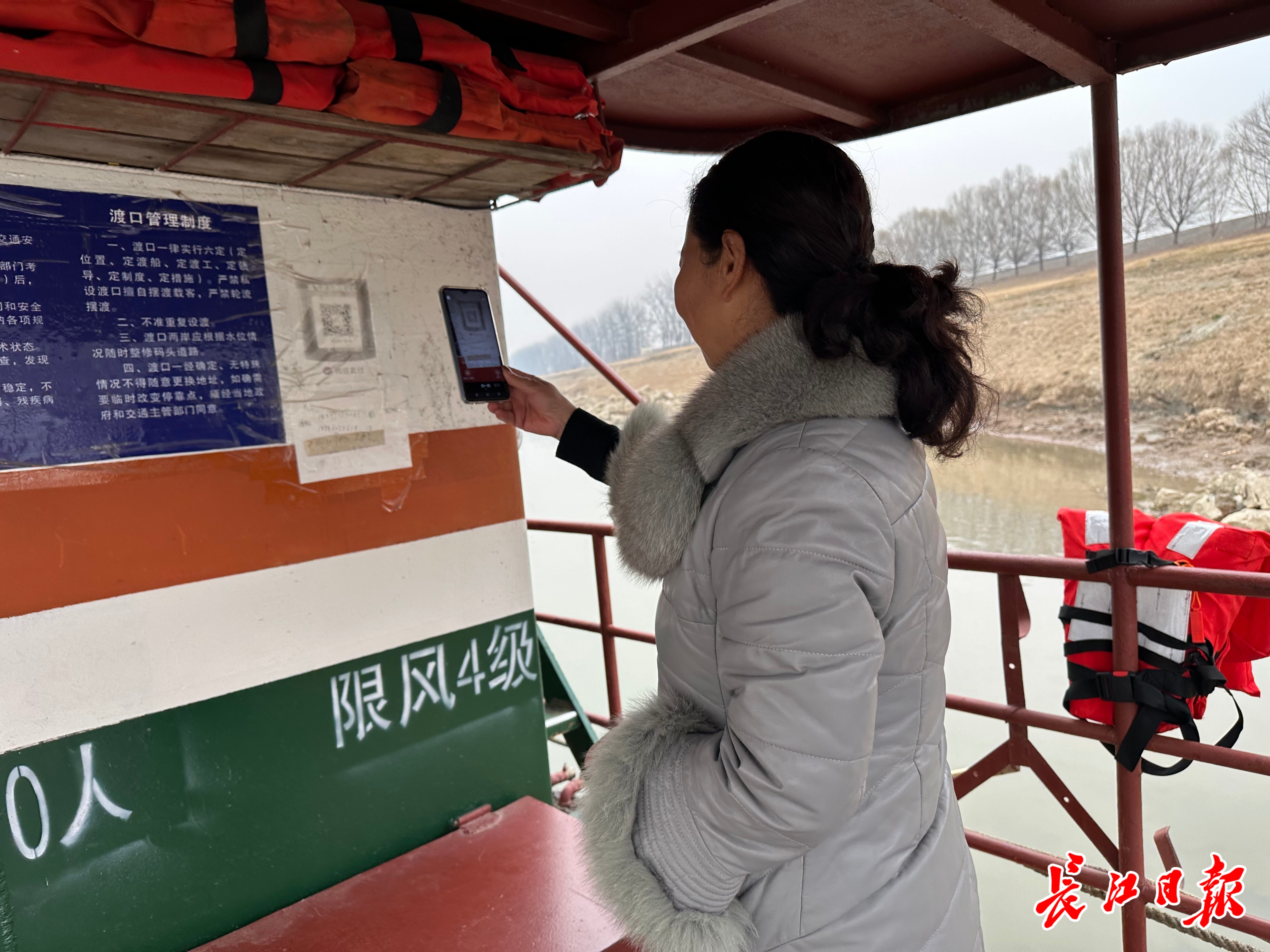 一名乘客正在手机扫码支付船票。 记者张衡 摄