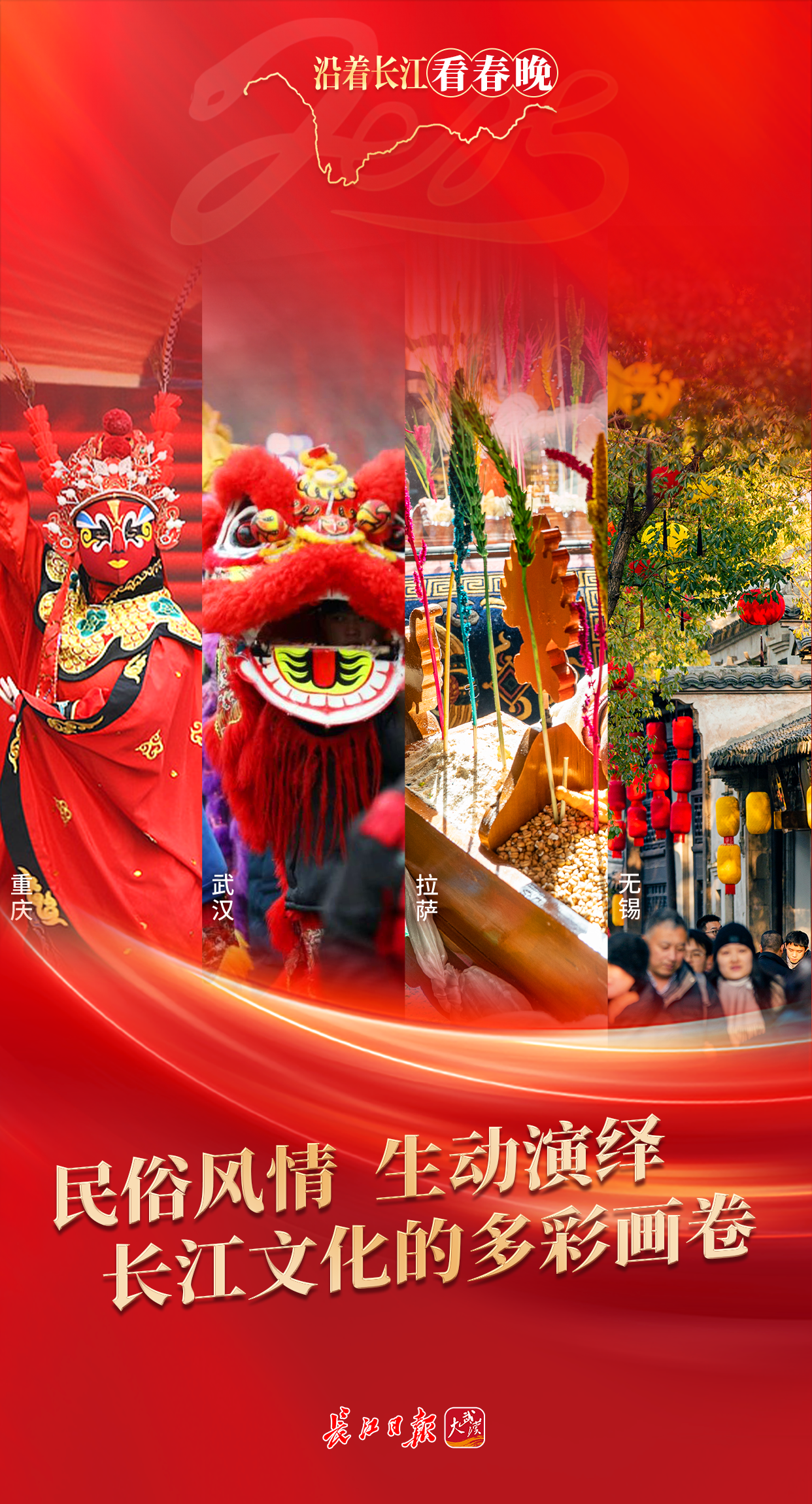 在新春佳节的喜庆氛围中,乙巳蛇年春晚盛大启幕。这不仅是一场阖家团圆时的视听盛宴,更是一次对长江文化的深情礼赞。重庆、武汉、拉萨、无锡,四座与长江密不可分的城市,在除夕当晚作为春晚分会场,与北京主会场遥相呼应,共同绘就了一幅绚烂多彩的文化长卷。沿着长江,我们能看到不同的地貌孕育出的独特城市风情,也能感受到同一条江所凝聚的深厚文化底蕴,让全球观众得以于春晚的多彩画卷中,品味长江文化的独特韵味,共赴一场跨越山海的文化盛会。