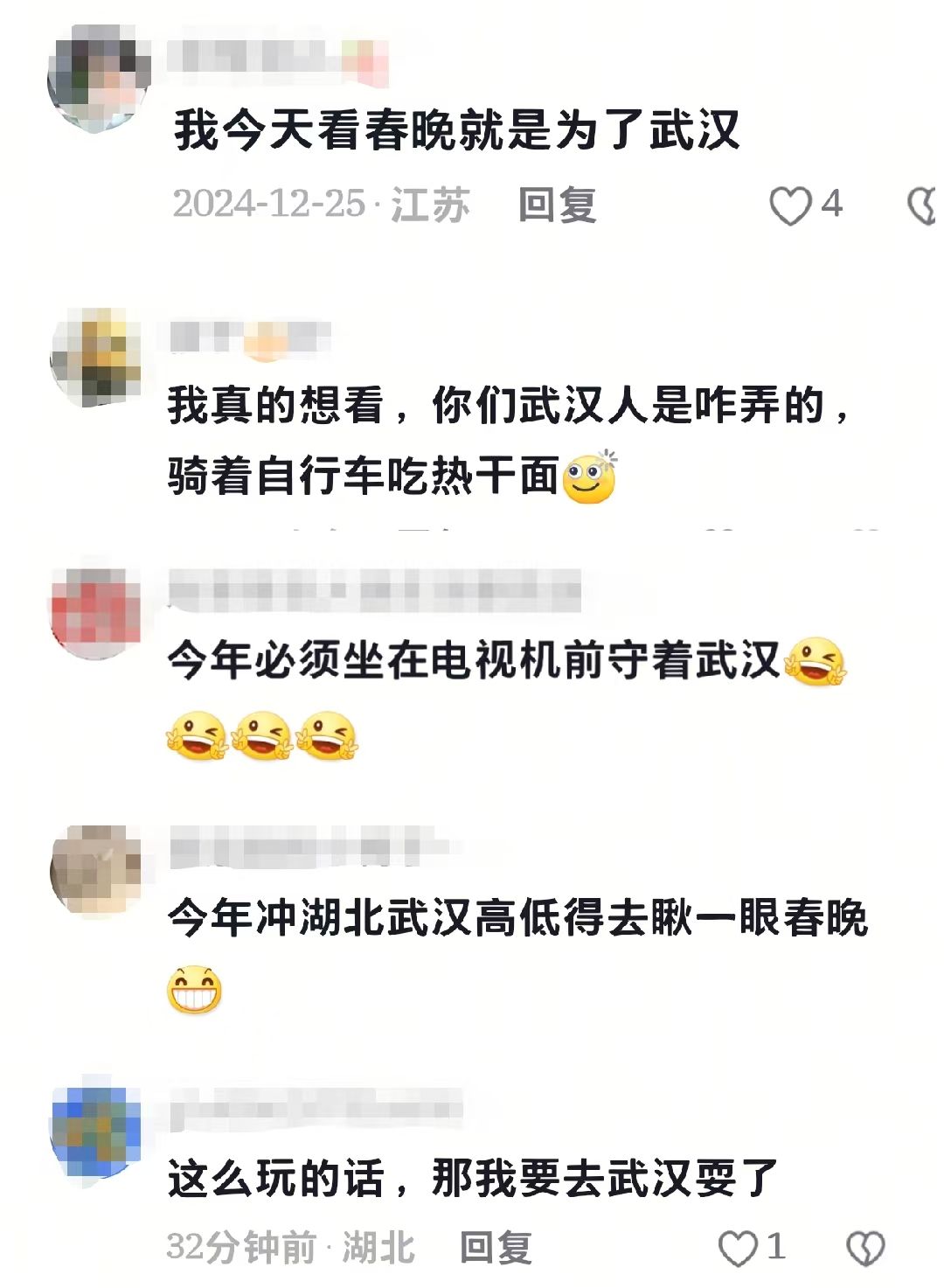 事实上,春晚分会场官宣武汉后,不只武汉市民和演员们,全国各地众多观众都留言表示期待。