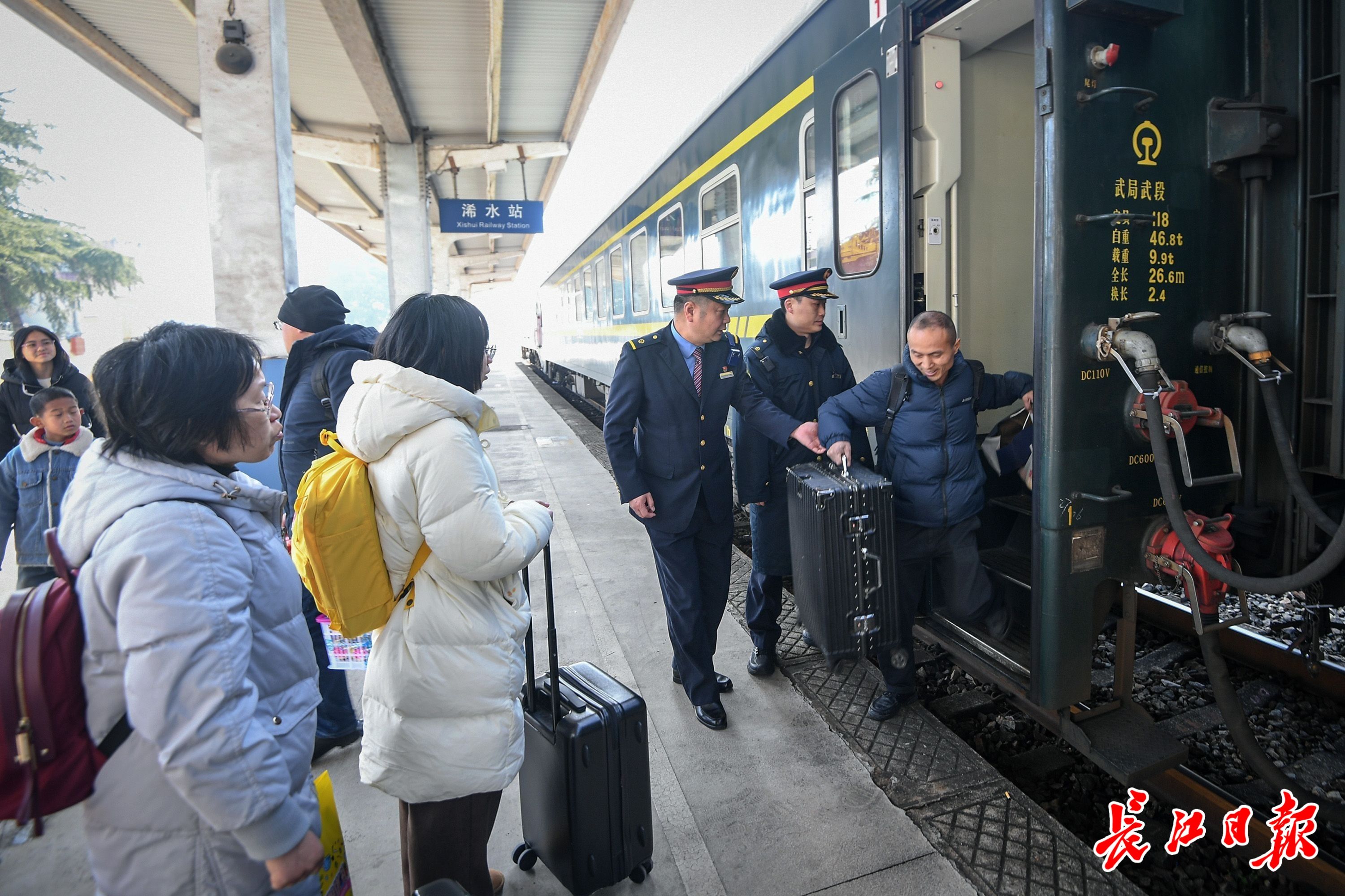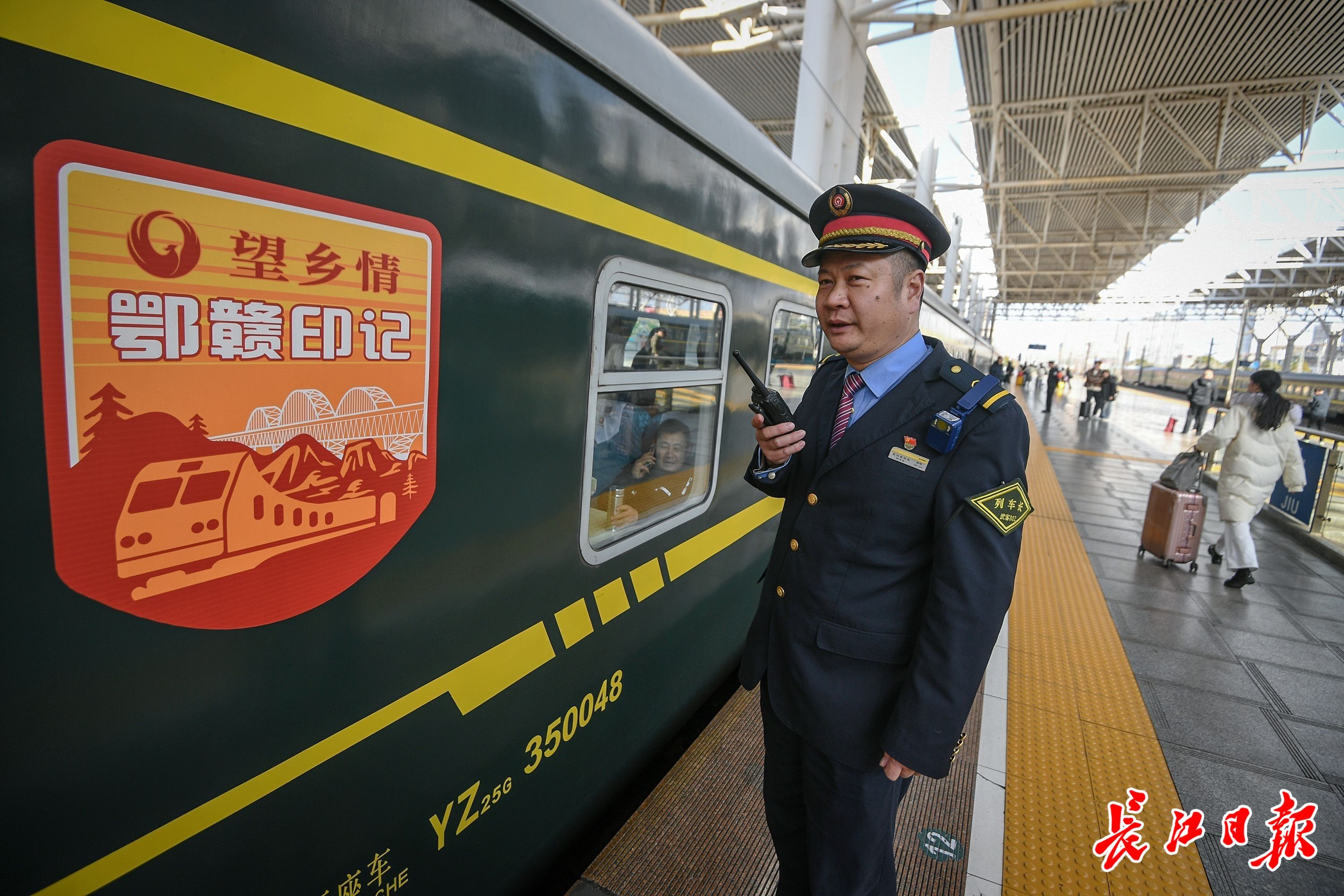 “开门。”1月27日13时,随着列车长熊伟在对讲机中一声令下,停靠在九江车站2站台的6026次列车的车厢门依次打开,熊伟和乘务员们一起在门口检票,引导400多名乘客有序登车。