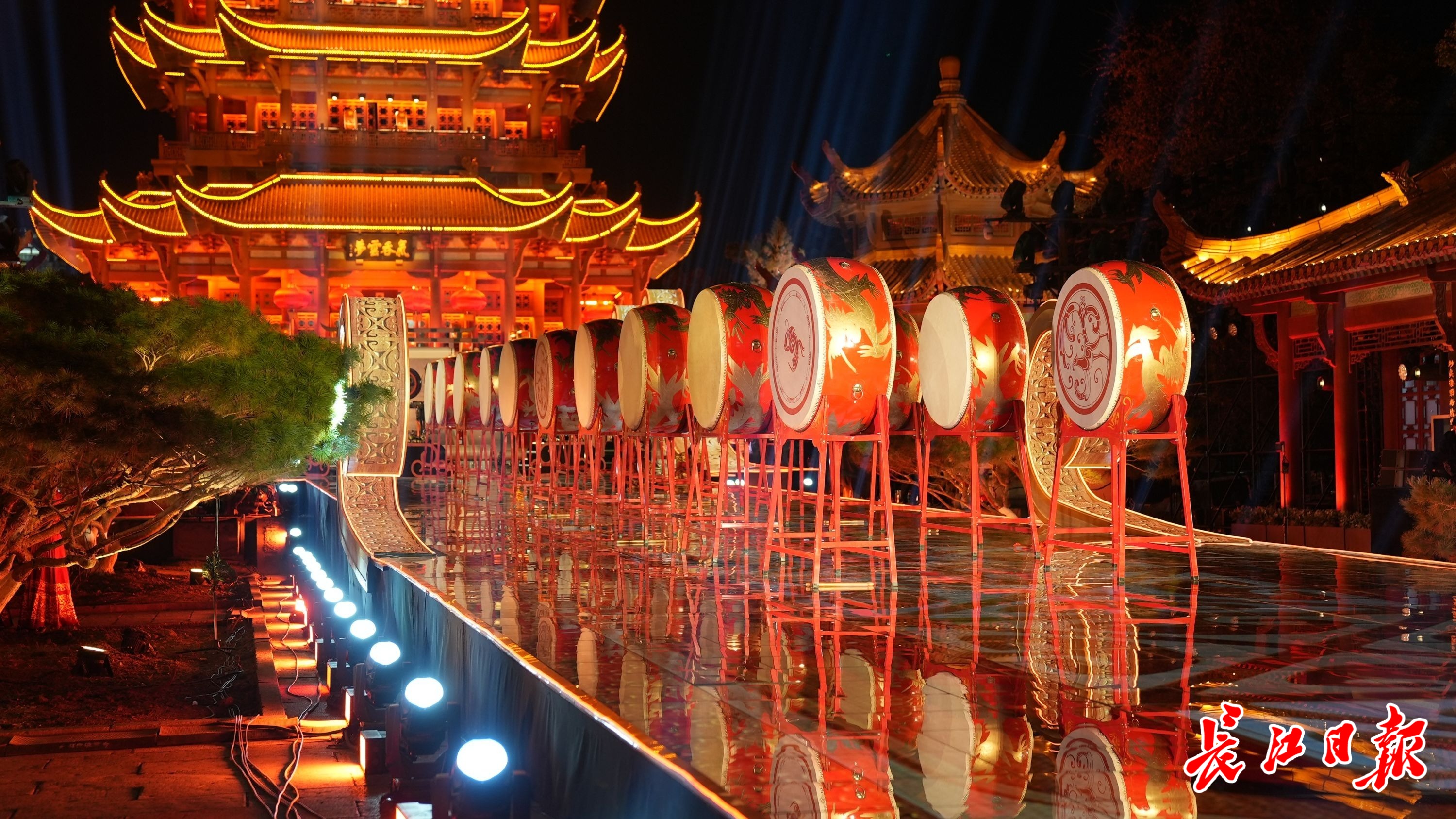 春晚武汉分会场,黄鹤楼彩排现场。记者高文举 摄