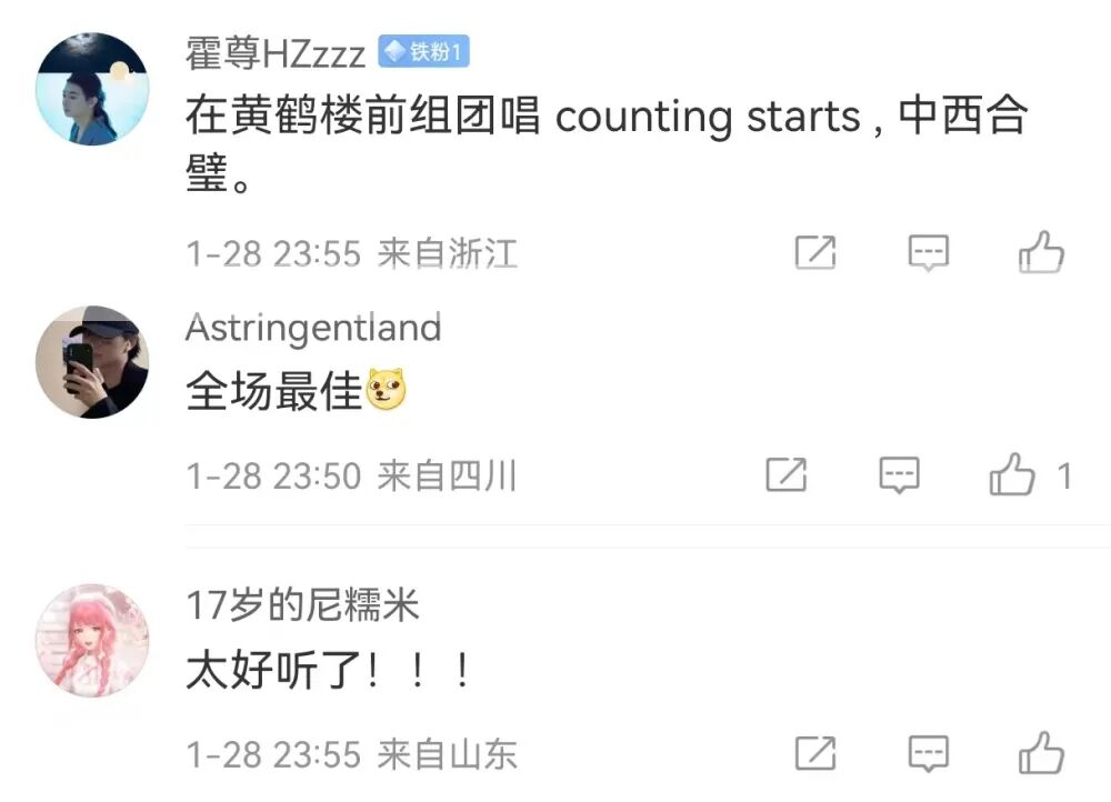 同样在武汉,美国流行摇滚乐队OneRepublic在黄鹤楼下唱响代表作《Counting Stars》,实现了一场跨越山海的合唱。