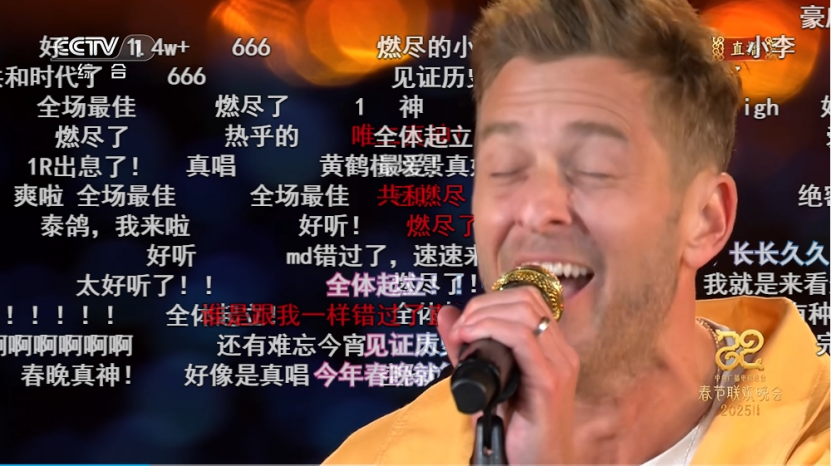 在春晚的武汉分会场,还有一个小彩蛋。美国流行摇滚乐队OneRepublic登上黄鹤楼,献唱歌曲《Counting Stars》。B站跨年晚会和央视春晚的“默契”让网友惊呼“牛哇”:“前脚刚在B站跨年看到《Counting Stars》,后脚就上春晚了。”