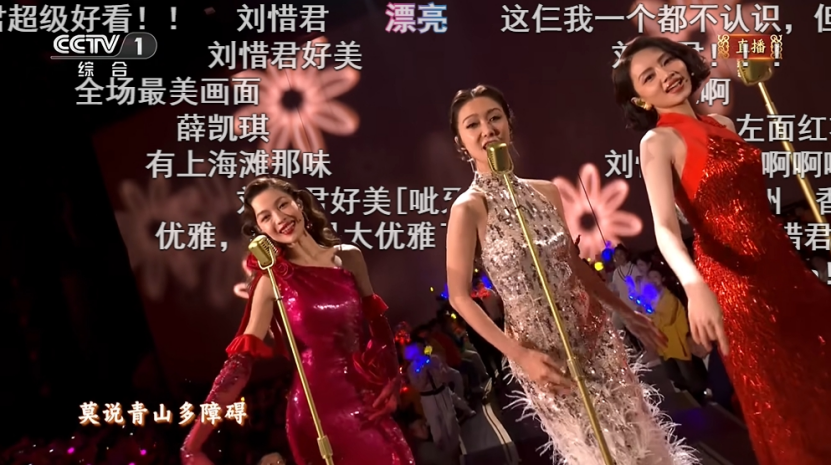 对粤语地区的网友来说,更具情怀的可能是集齐汪明荃、陈小春、薛凯琪等老中青大湾区艺人的节目《湾区乐好》。钟楚曦、薛凯琪和刘惜君穿着礼服摇曳在话筒前唱出“莫说青山多障碍,风也急风也劲”,仿佛一下将时空拉回了上个世纪的香港乐坛。