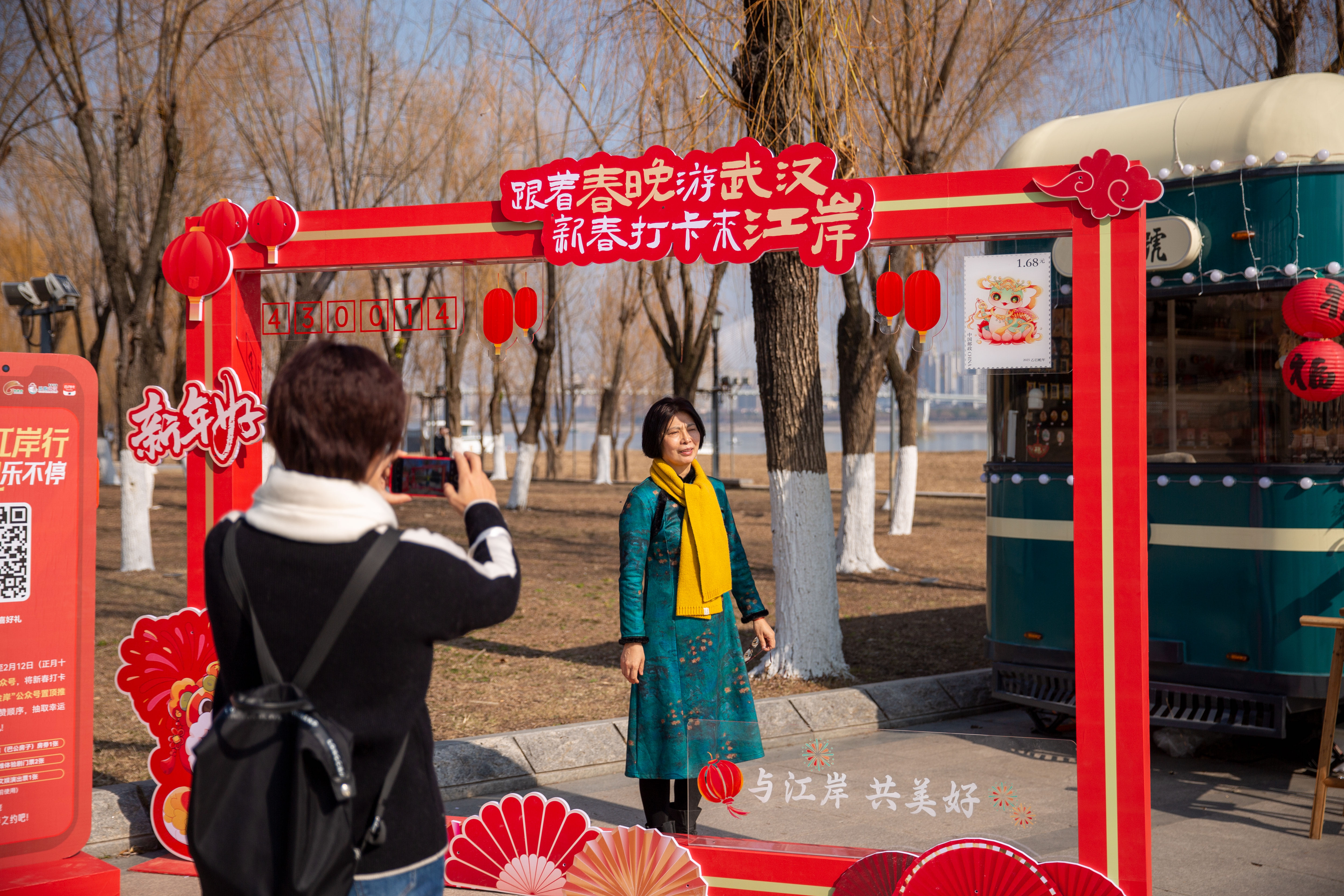 “知音号时光码头”连续4天接待近6000人。现场“新年知音‘有福抱’”活动为游客们带来了一场充满福气与惊喜的新春之旅。“我是知音号的‘小福星’!”7岁的小女孩双手抱着比她还高的大“福”字,在奶奶的镜头下笑得灿烂。2月1日上午11时许,园区内,从廊桥、趸船到船舱,满挂的各式“福”元素,随处可见游客们手持相机,在园区内拍摄了新年“福”装饰照片。“在充满怀旧气息的‘知音号’过年,年味特别浓!”从广东来武汉探亲的李先生刚刚把照片发到社交平台,就在现场领取到了一份新年福礼。