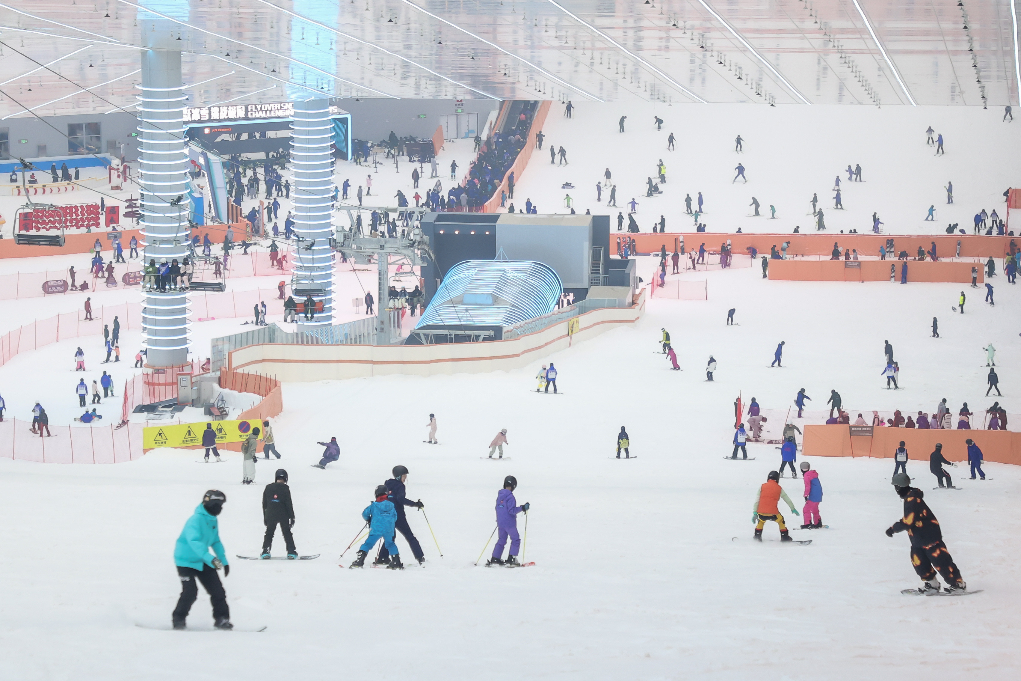 2024年11月8日,随着华中最大的室内滑雪场——甘露山国际滑雪场在黄陂区开业迎客,至此武汉三镇皆有大型滑雪场。今年春节,甘露山文创城围绕冰雪主题,在雪场内设有长白山同款“冰坑大挑战”雪地捞金,还有以万朵玫瑰装扮的“尔滨”同款百米漂流雪圈道,旨在满足游客的娱雪需求,让初学者也能在此体验到滑雪的快乐。今年7岁的黄嘉谦刚上一年级,他说:“自从甘露山国际滑雪场开放,每周妈妈都要带我来滑雪。现在,我已逐渐掌握这项技能,能在雪场飞驰。”