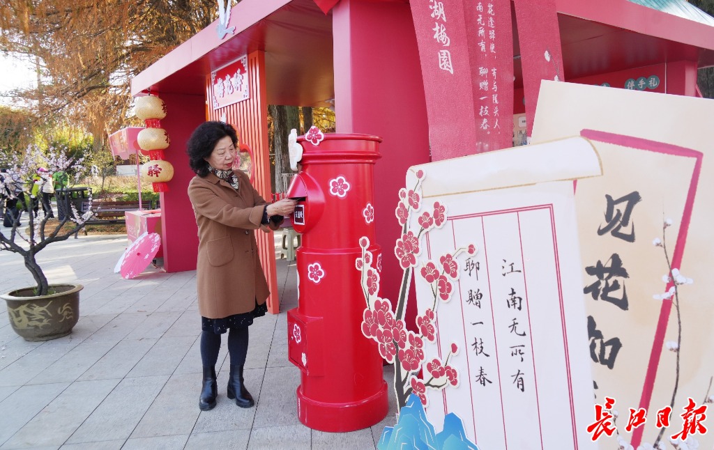 “因为工作的关系,今年就留在武汉过年了,我觉得梅园这个活动特别有意义,可以把我的祝福传递给在家乡的亲人。”来自恩施的彭女士一边写着祝福一边告诉记者。她手中的明信片上,一朵栩栩如生的梅花在祝福语的映衬下显得格外醒目。