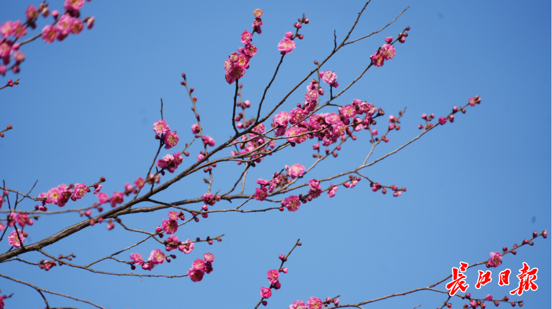 东湖梅园,梅花在枝头绽放。何晓刚 摄