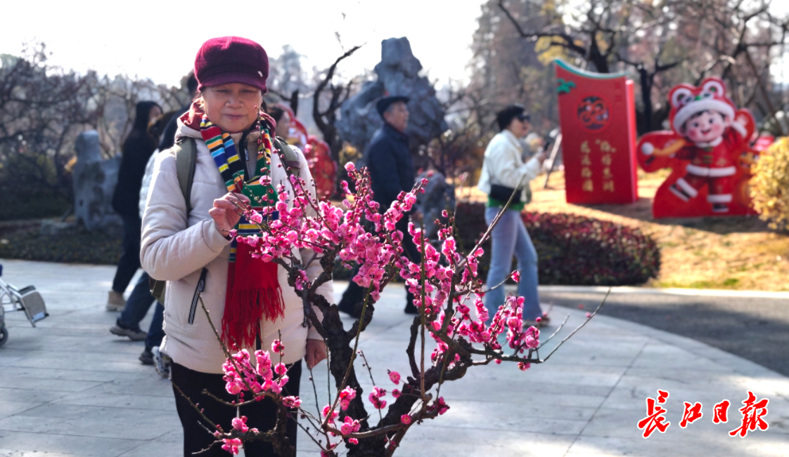 春节假期,东湖梅园内欢声笑语不断,红火的灯笼高高挂起,竞相绽放的梅花在枝头摇曳生姿,梅花盆景错落有致,竞相绽放,吸引着四面八方的游客前来观赏。