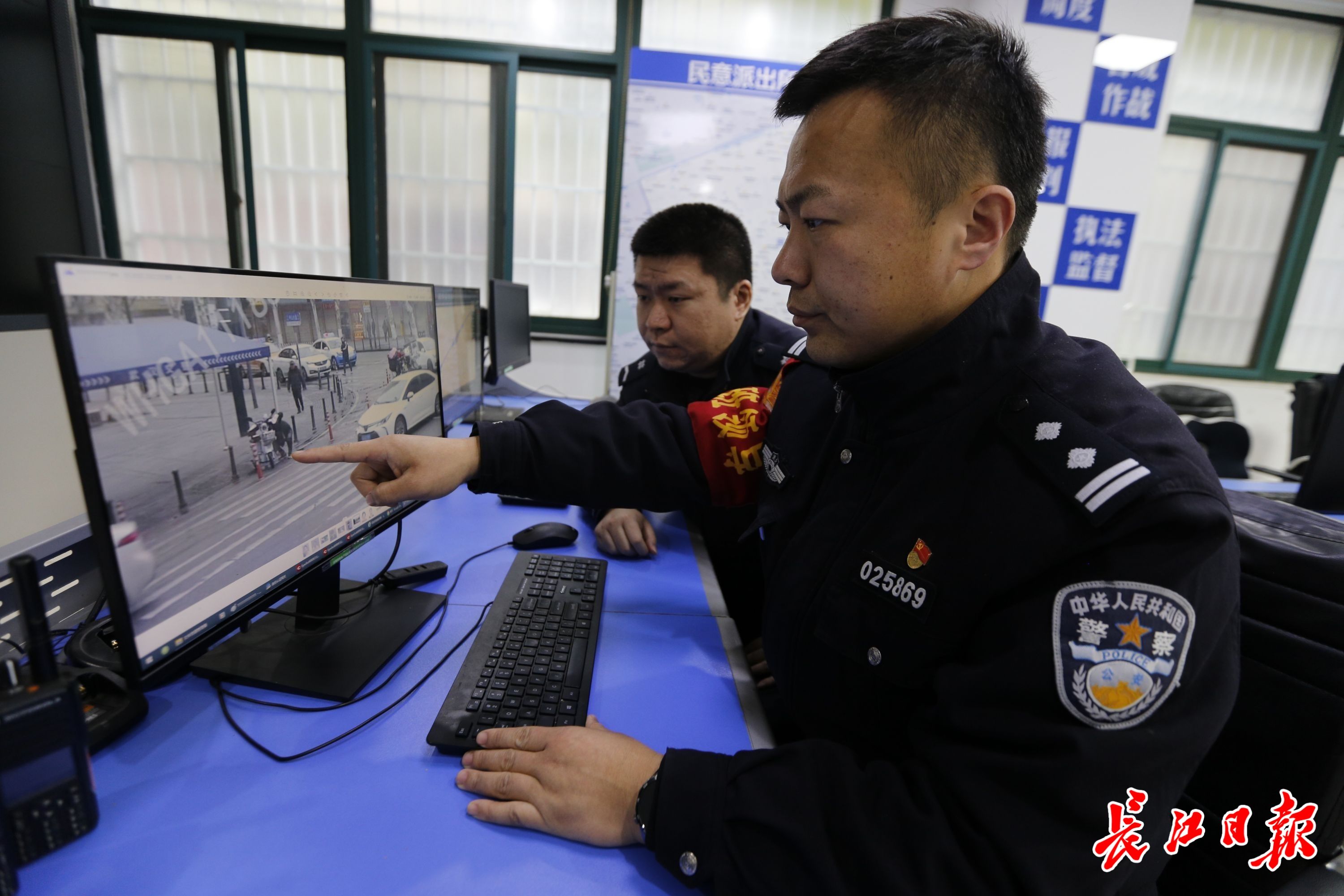 2月2日12时许,殷文齐(右)在监控视频中发现了捡手机的人。长江日报记者陈勇 摄