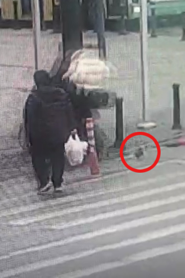 “看,这里好像掉了个东西。”12时4分,殷文齐指着显示屏上的监控录像告诉一旁围观的长江日报记者。顺着他的手指记者看到,11时13分,曾女士骑车经中山大道友谊一个路坎时,车子颠了一下,一个黑色的东西从她的身上滑落路边。殷文齐截图放大查看,是手机。