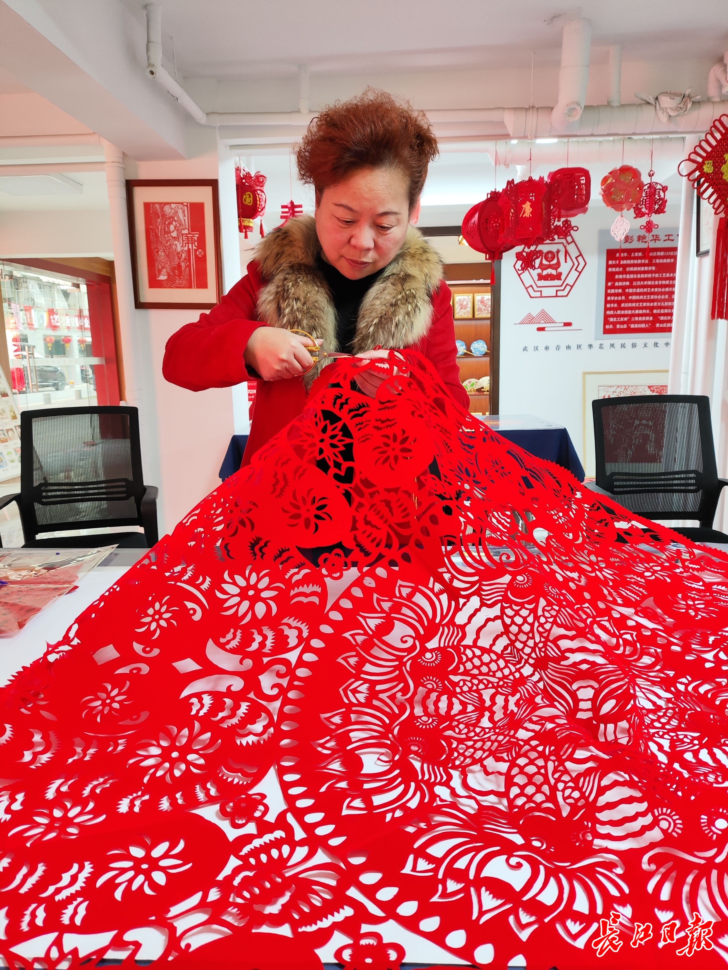 春节假期,彭艳华团队的武汉剪纸作品在青山区图书馆、123社区等地展览。