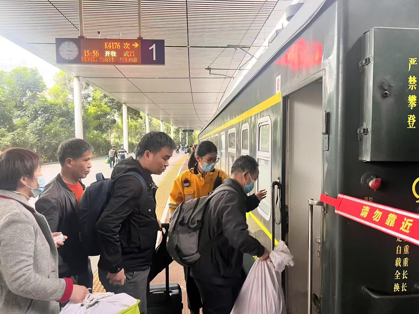 长江日报大武汉客户端2月3日讯(记者史强)“每次看到站台上‘广州’两个字,心里就特别想家,我就会故意和同事聊天,好转移注意力”。3日,首次参加春运临客服务的广东女孩石思琦趁着休息时间给在肇庆家中的父亲打了电话。次日清晨,她将继续踏上春运临客之旅。