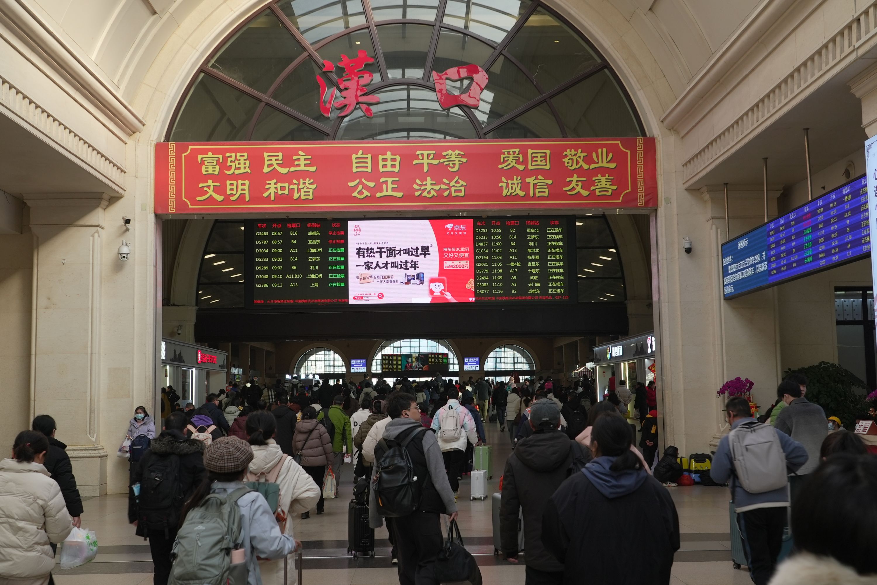旅客在汉口站集中出行。通讯员宋萍摄