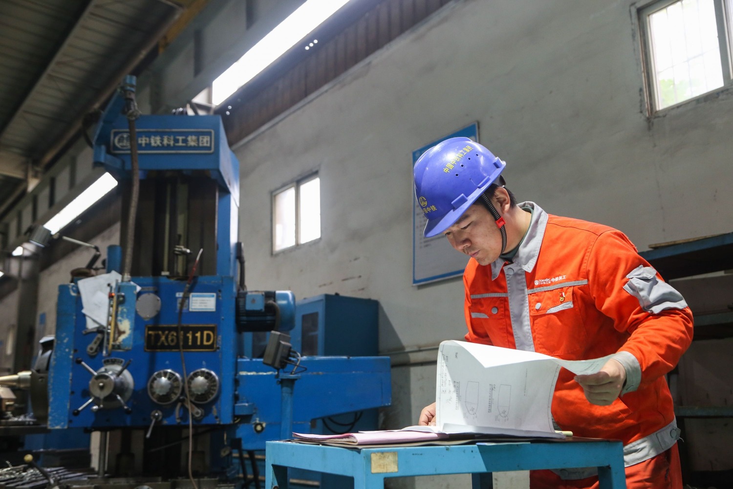 长江日报大武汉客户端2月4日讯 2月4日,中铁科工轨道公司江夏生产基地里,电焊岗上火花四溅。不远处的车削设备缓缓转动,削出一圈圈铁花。车床之间,机加车间班长陈汉龙和工友一起蹲在设备前,盯着正在加工的巨大零件。