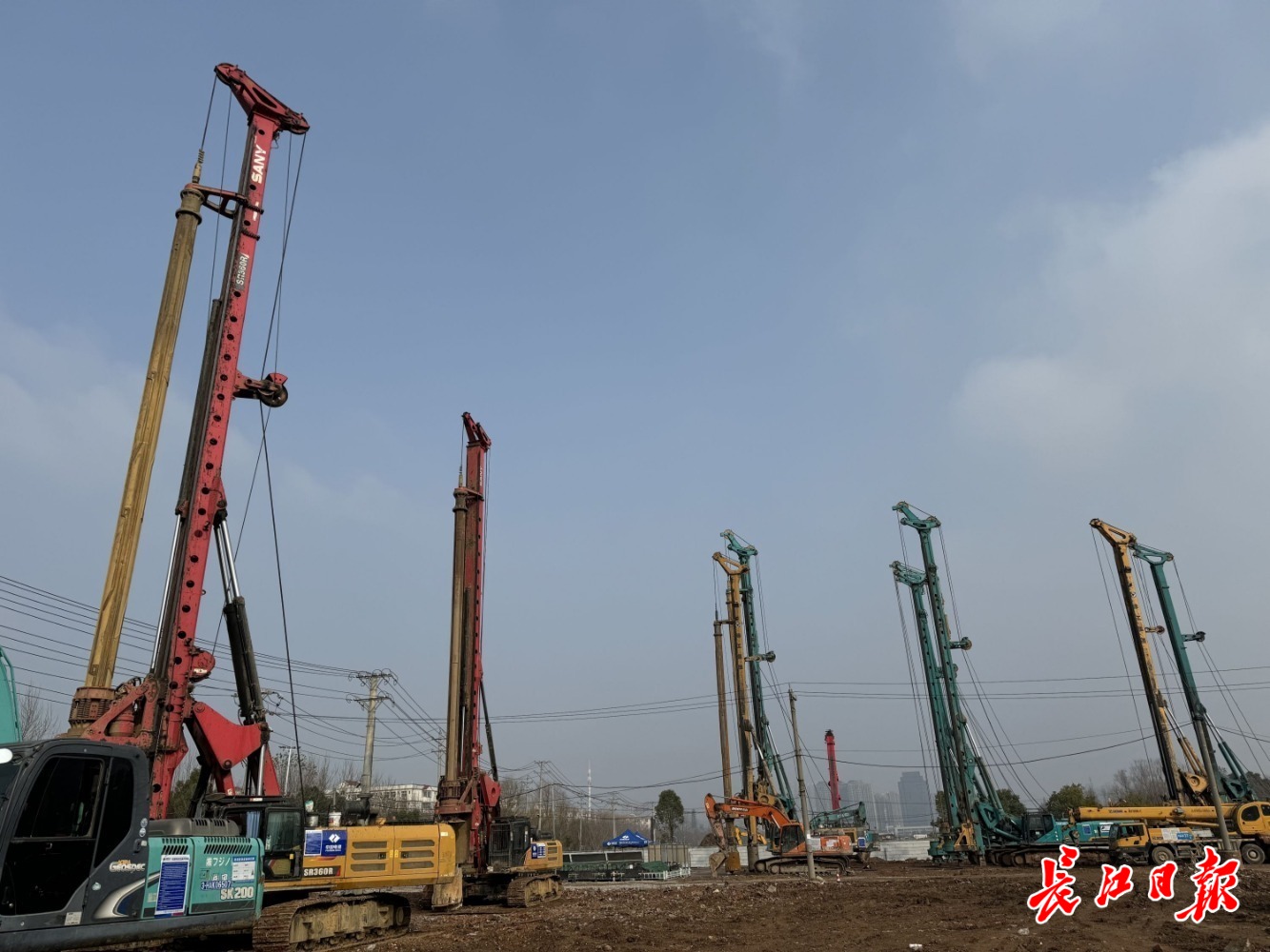长江日报大武汉客户端2月4日讯 清理施工场地、土方开挖、钻孔灌注桩……2月4日,在武汉地铁12号线板桥停车场建设工地,200余名施工人员操纵挖掘机、旋挖钻机和起重吊车,驾驶运输车,百余台大型机械设备同步作业,一派忙碌景象。