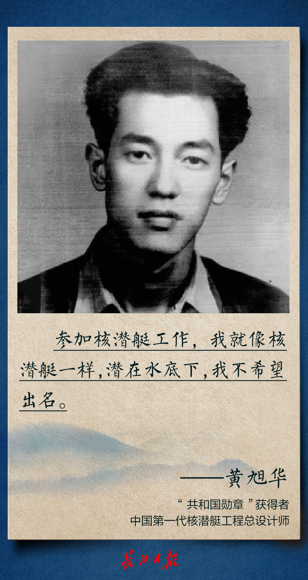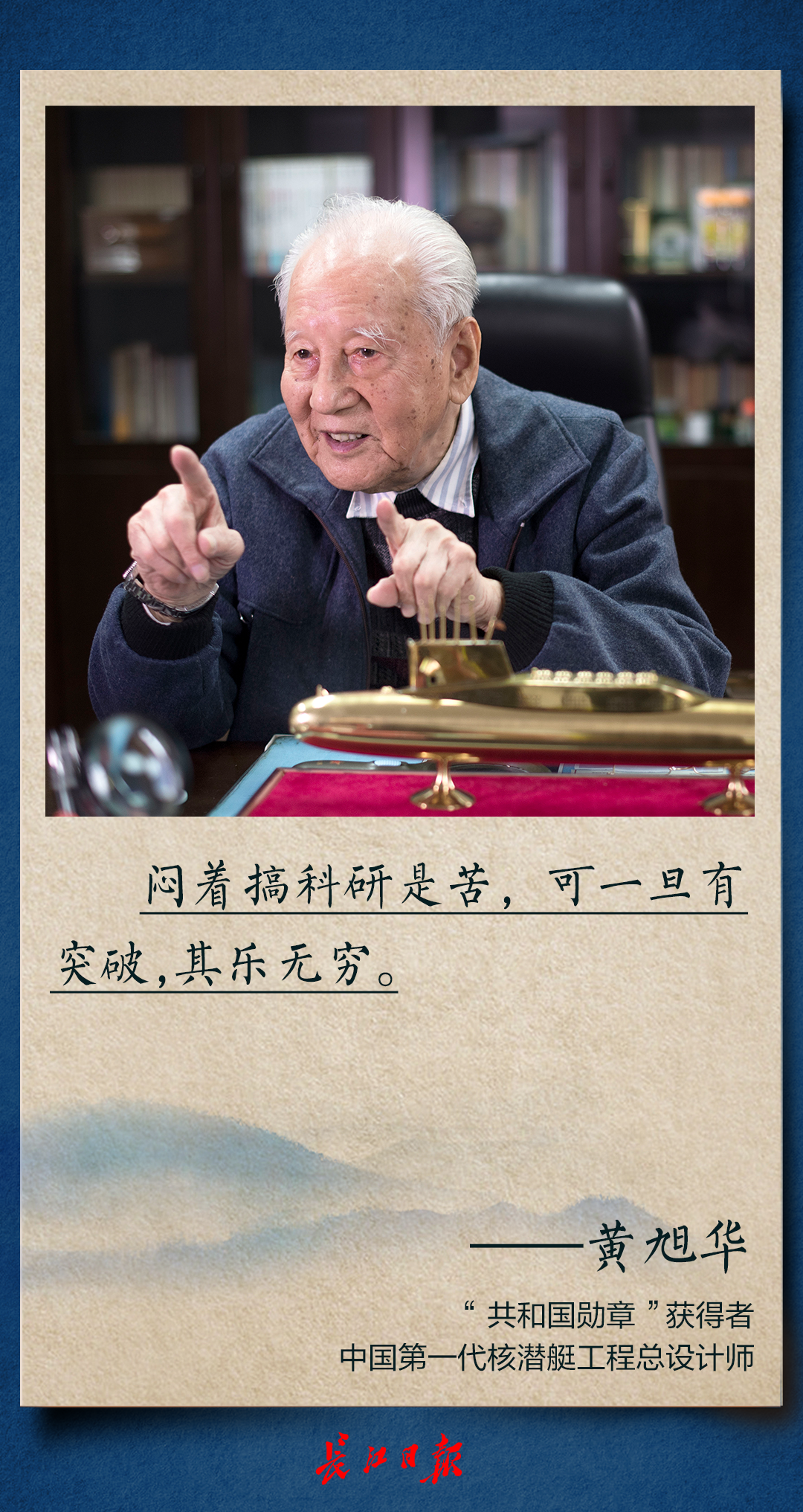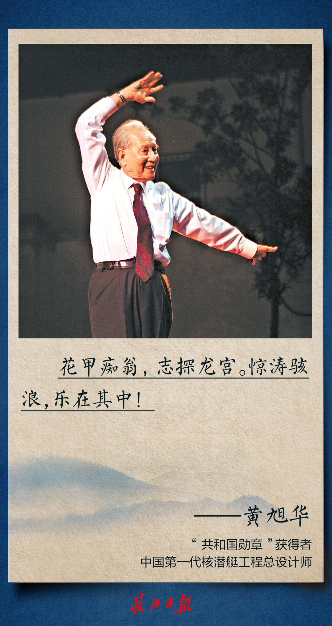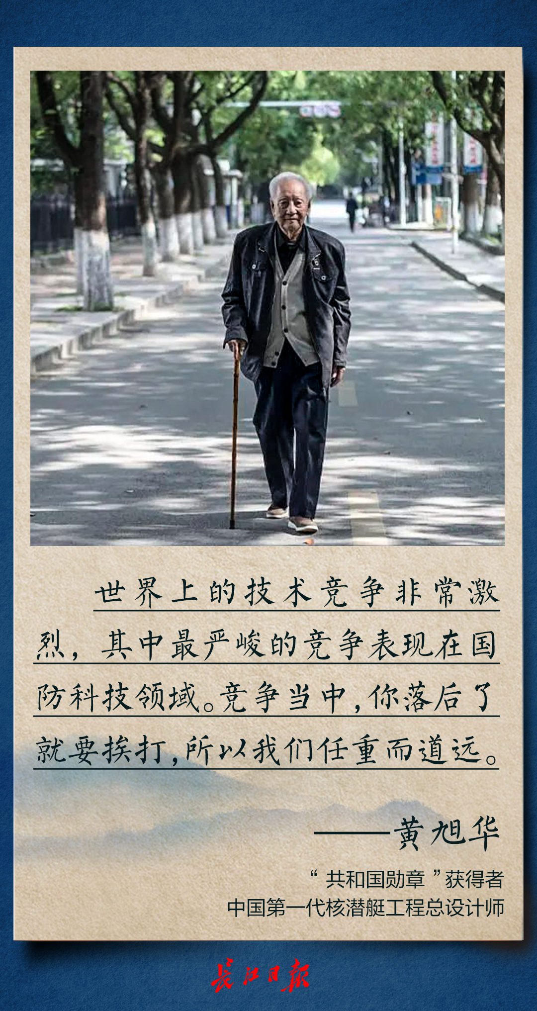 黄旭华院士这8句话,震动人心! ©原创 2025-02-07 21:58 0 2025年2月6日 “共和国勋章”获得者、 中国第一代核潜艇工程总设计师 黄旭华同志在湖北武汉逝世 享年99岁 隐“功”埋名三十载 终生报国不言悔 今天 让我们重温黄旭华院士 说过的这些话 在铿锵有力的话语中 感悟他对祖国的拳拳赤子心 整理:曹欣怡 设计:刘岩 【编辑:姚昊】