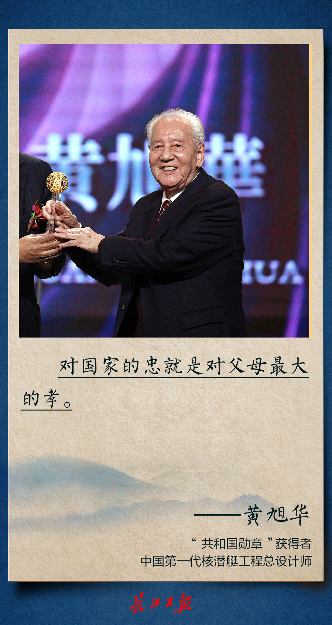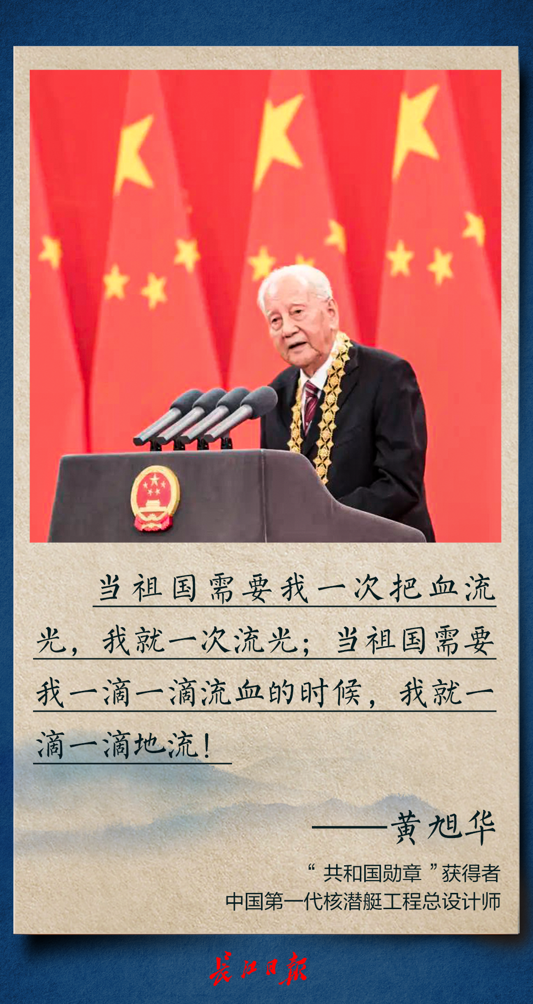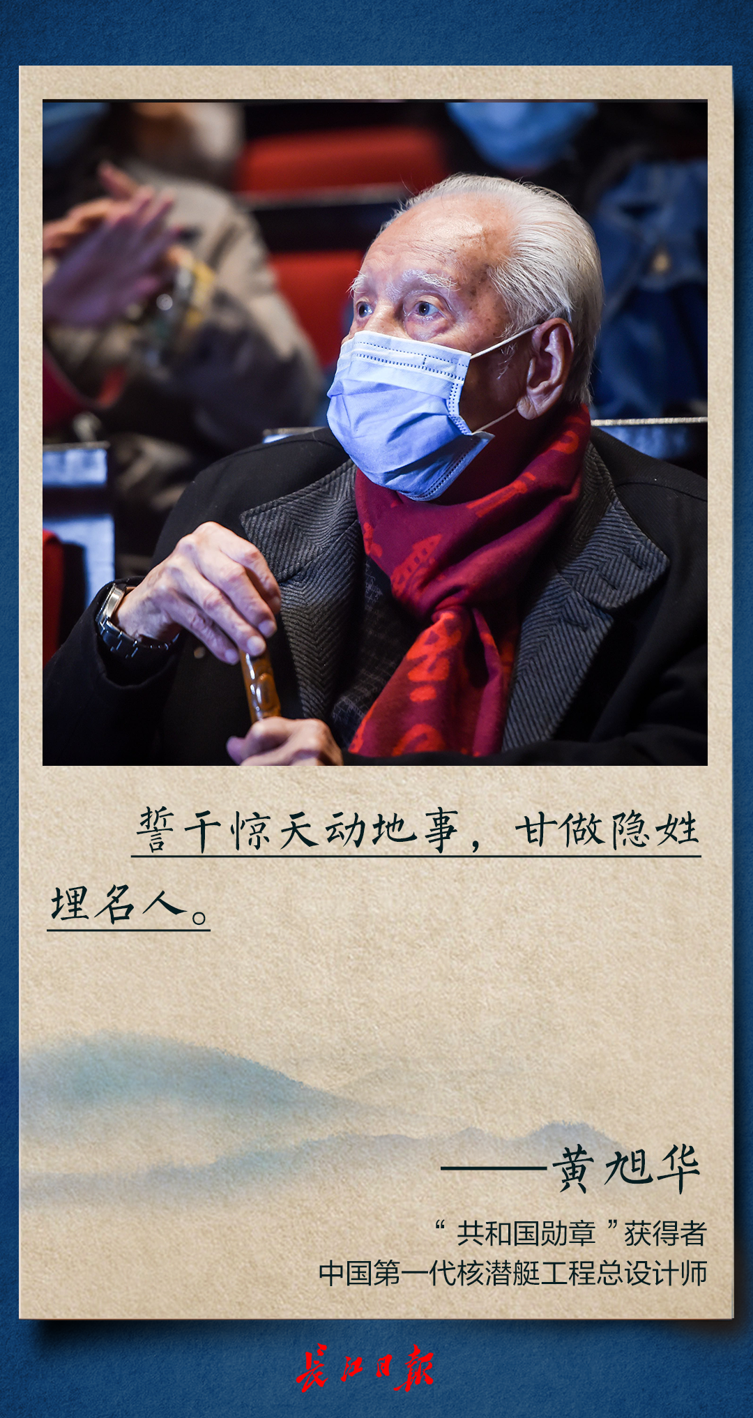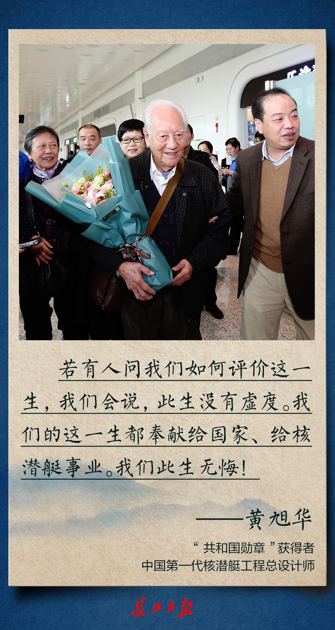 黄旭华院士这8句话,震动人心! ©原创 2025-02-07 21:58 0 2025年2月6日 “共和国勋章”获得者、 中国第一代核潜艇工程总设计师 黄旭华同志在湖北武汉逝世 享年99岁 隐“功”埋名三十载 终生报国不言悔 今天 让我们重温黄旭华院士 说过的这些话 在铿锵有力的话语中 感悟他对祖国的拳拳赤子心 整理:曹欣怡 设计:刘岩 【编辑:姚昊】