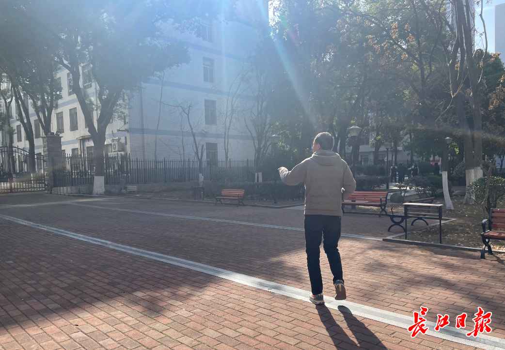 王艳明向记者介绍,这里是黄旭华生前经常打拳的小广场。 记者占思柳 摄