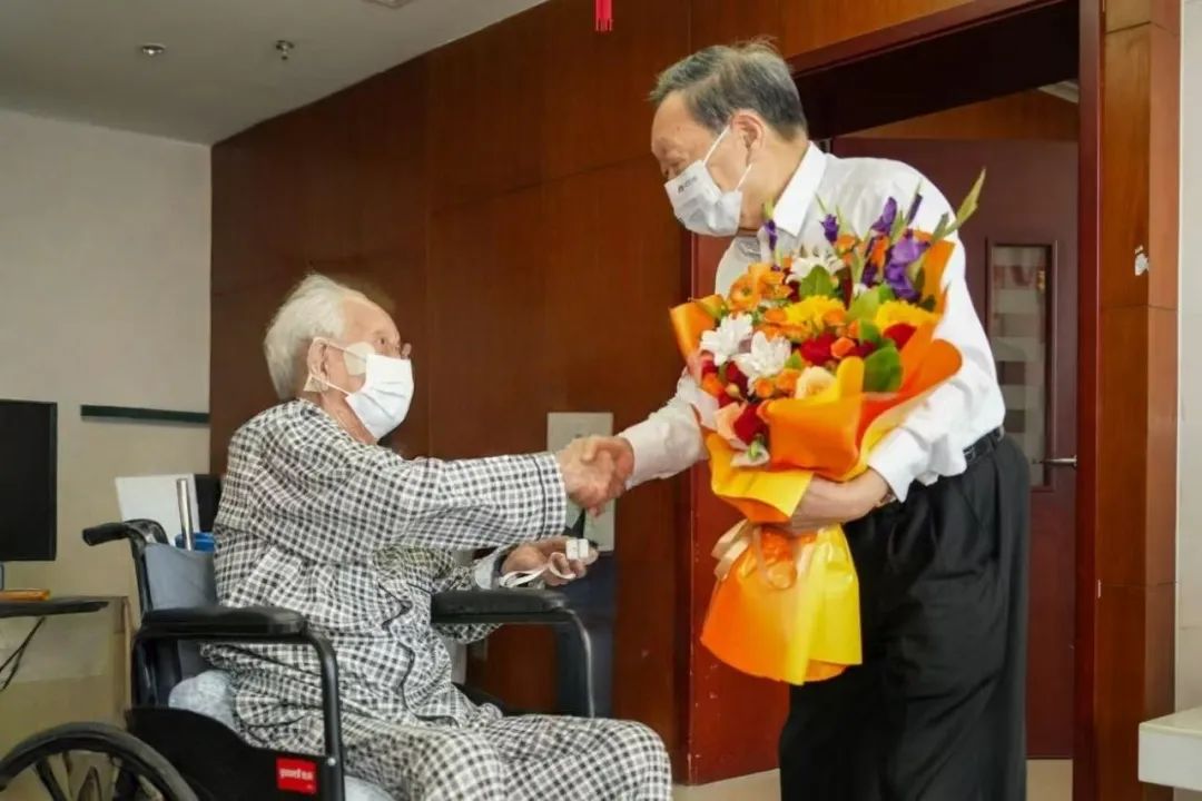 ▲李德仁院士慰问黄旭华院士女儿黄峻