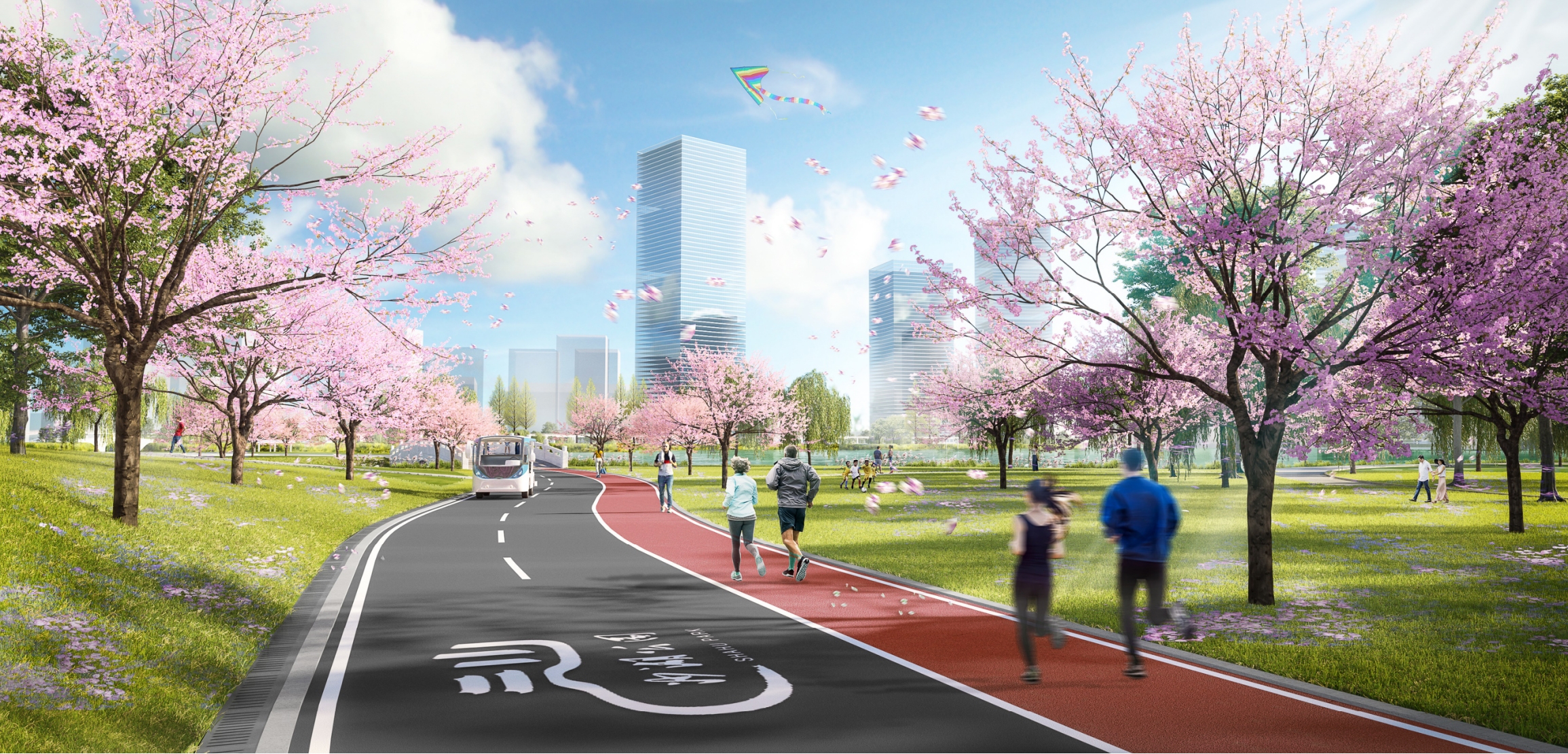 1.中轴线道路将由13.5米扩宽至18.5米,两侧各建6个大小不一、特色各异的阳台,平时作为市民休闲活动的空间,举办盛大花事活动时可用来布展。