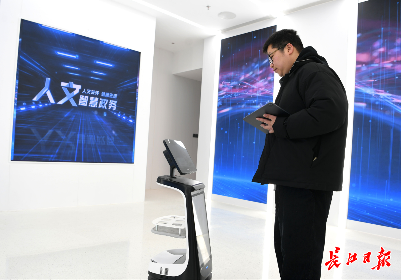 走进声通科技总部大楼一楼数智化展厅,记者感觉到科技感扑面而来——机器人“小洛”热情导览,数字人“水生”快速答疑,扫拖一体的自动清扫机器人正在打扫卫生,还能用AI拍照机打卡各地热门景点……在“武汉软件新城智慧园区数字孪生平台”上,园区企业一目了然,未来还将联动无人机,实现快递投送,随时处置突发状况。