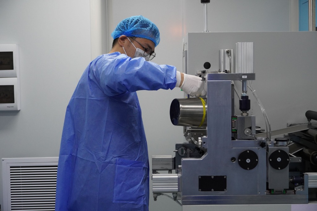 武汉经开区未来院中试基地,研发人员正在操作机械设备生产固态电池样品。
