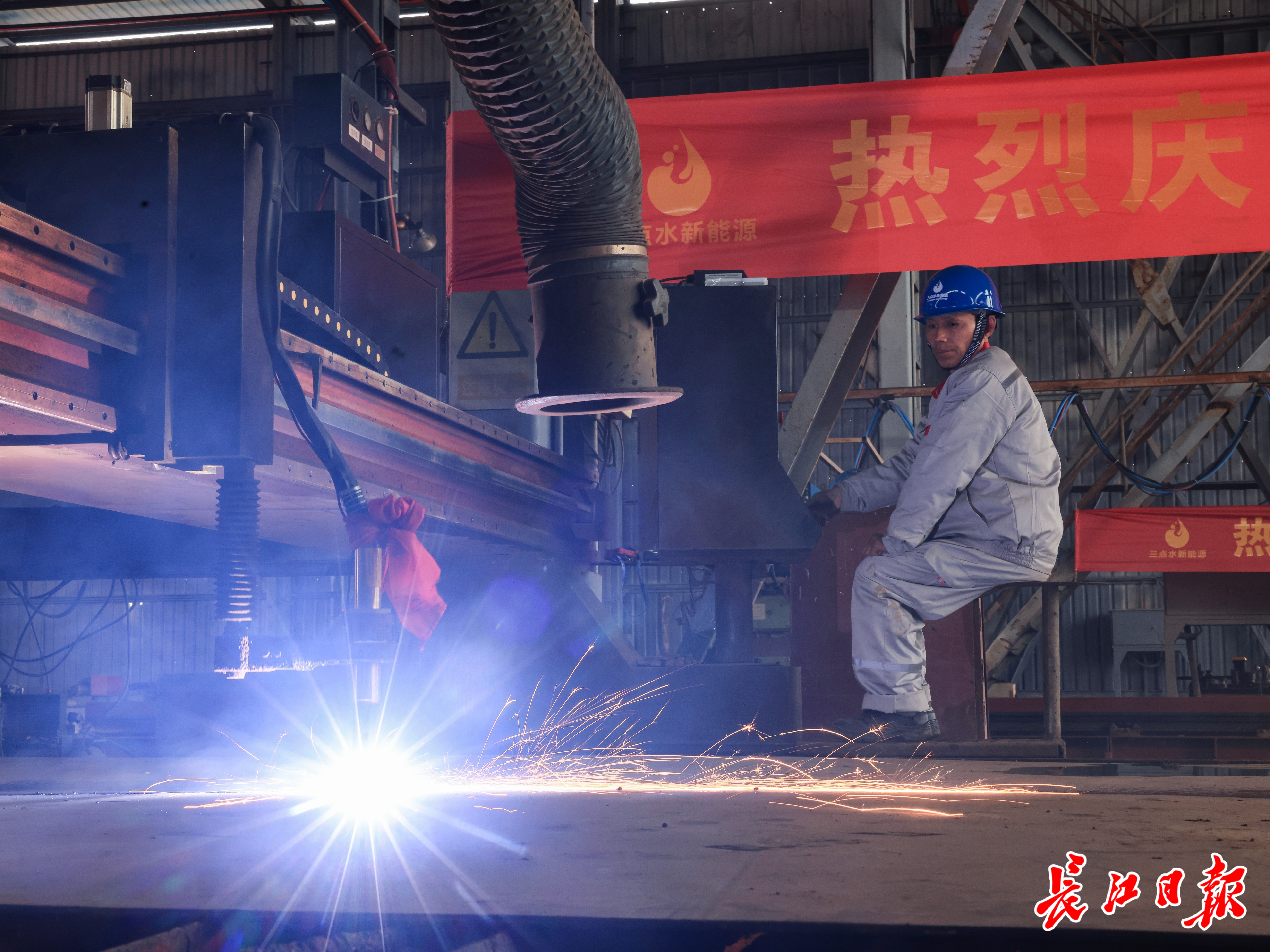 数控切割机点火启动。长江日报记者 胡冬冬 摄