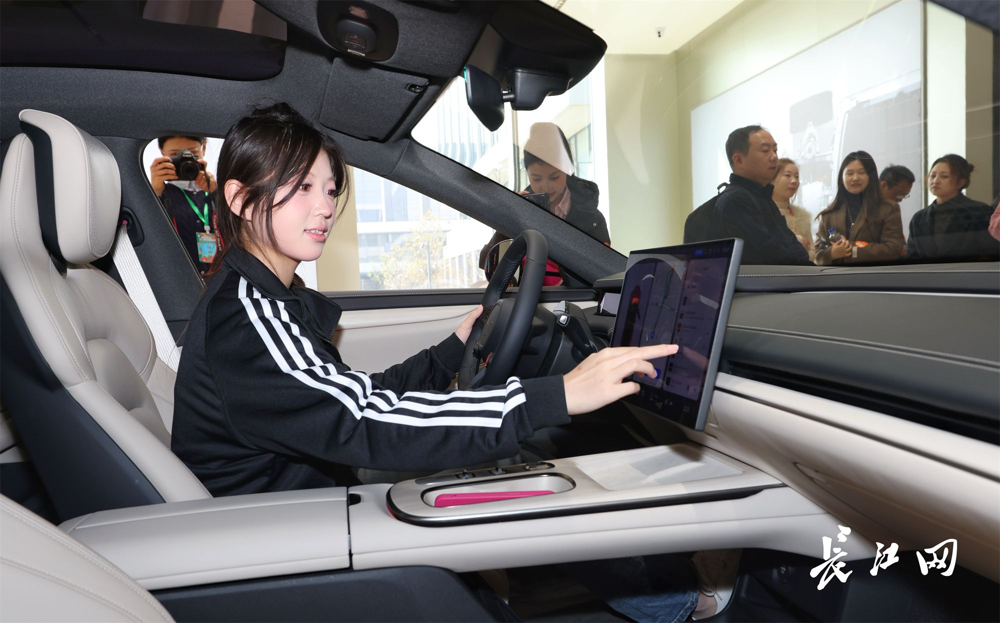 武汉理工大学法学与人文社会学院新闻传播学类2024级本科生魏嘉体验小米汽车。王筝 摄