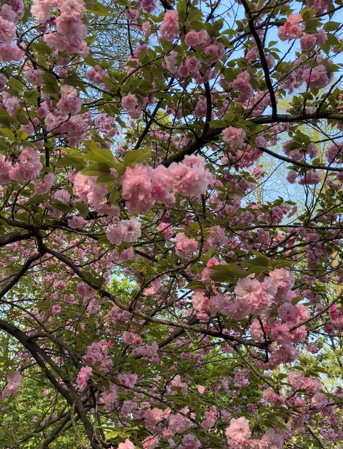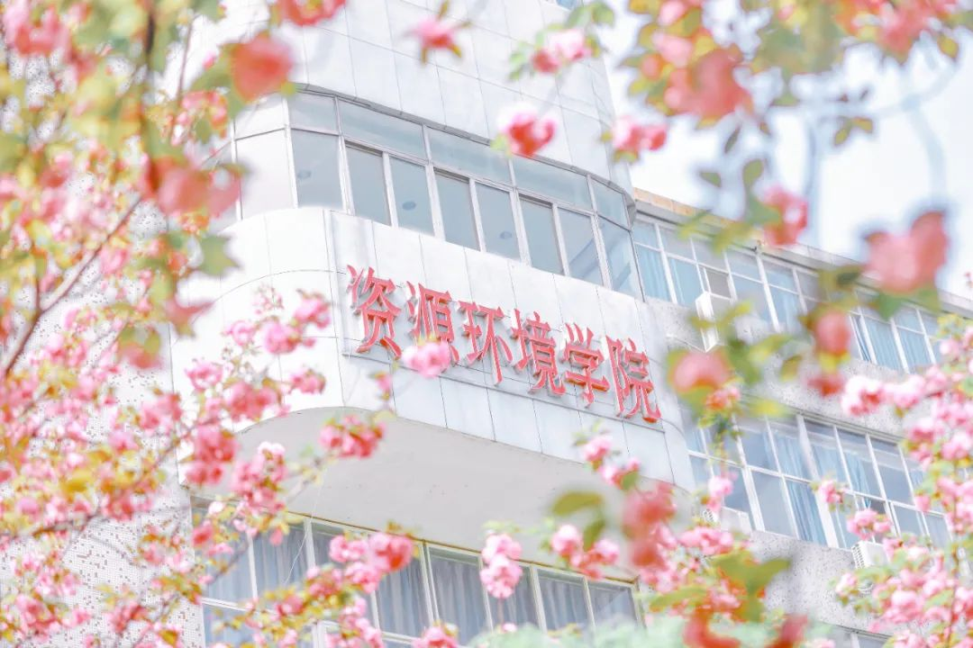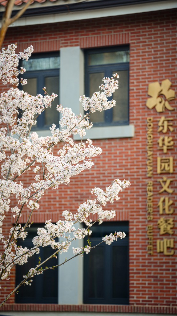 湖北大学校园内的晚樱。
