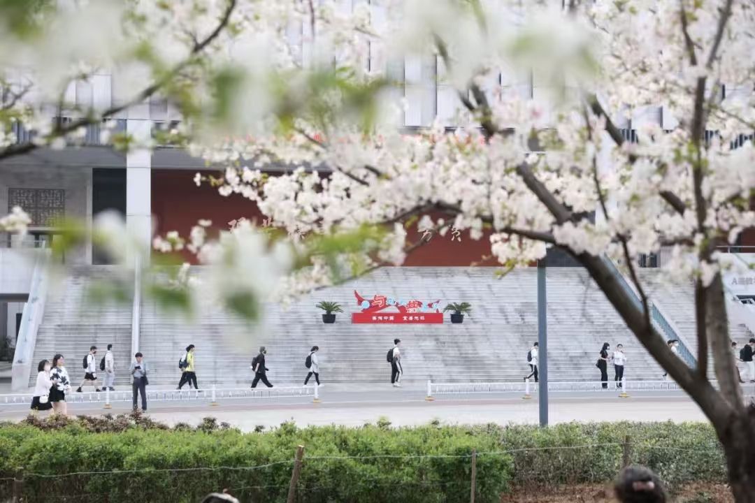 湖北大学校园内的樱花。