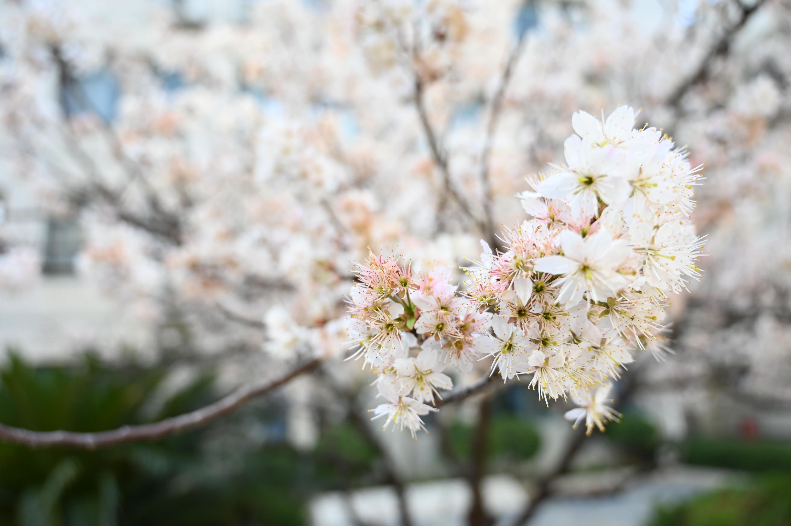 武汉工程大学:主要分布在第四教学楼附近。微风轻拂枝头的樱花,满树的洁白微微震颤,仿佛生命之间的共鸣,在枝丫间回响。花前向来不乏赏花的人,花开有期,留在相机里的瞬间却永恒。社会公众进入武汉工程大学可通过保卫处公众号,进行访客登录预约。