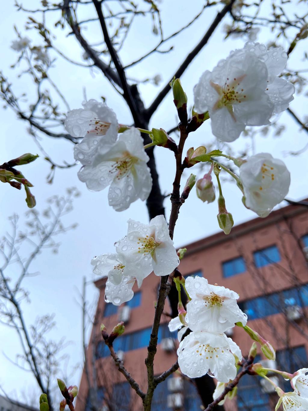 华中科技大学校园内的樱花。 左盈、许铭 摄
